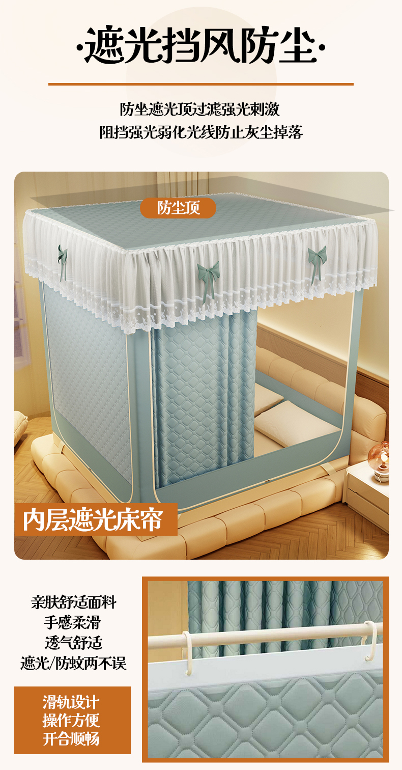 (总)夏彩 2025学生新款纯色强遮光三开门防蚊防尘强遮光拉链蚊帐-88603,88603-果绿,88603-海蓝,88603-卡其,88603-米黄,88603-藕粉,88603-深灰,88603-雾蓝