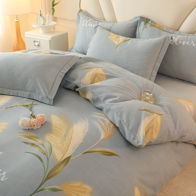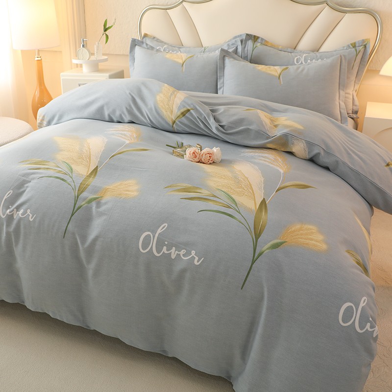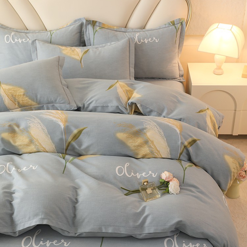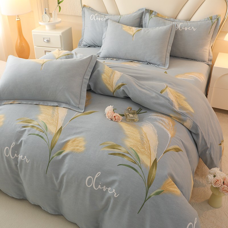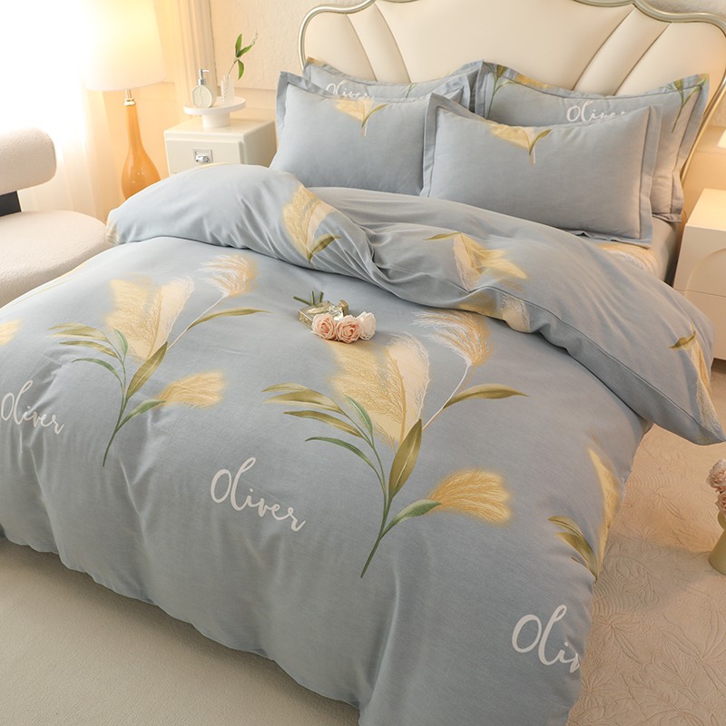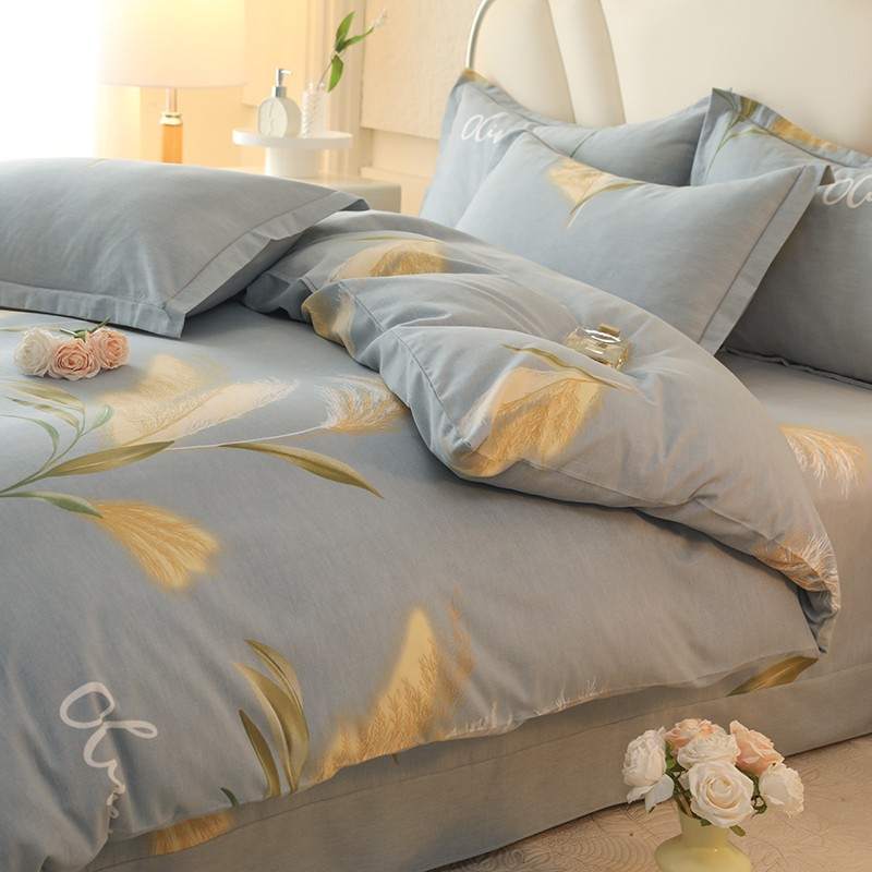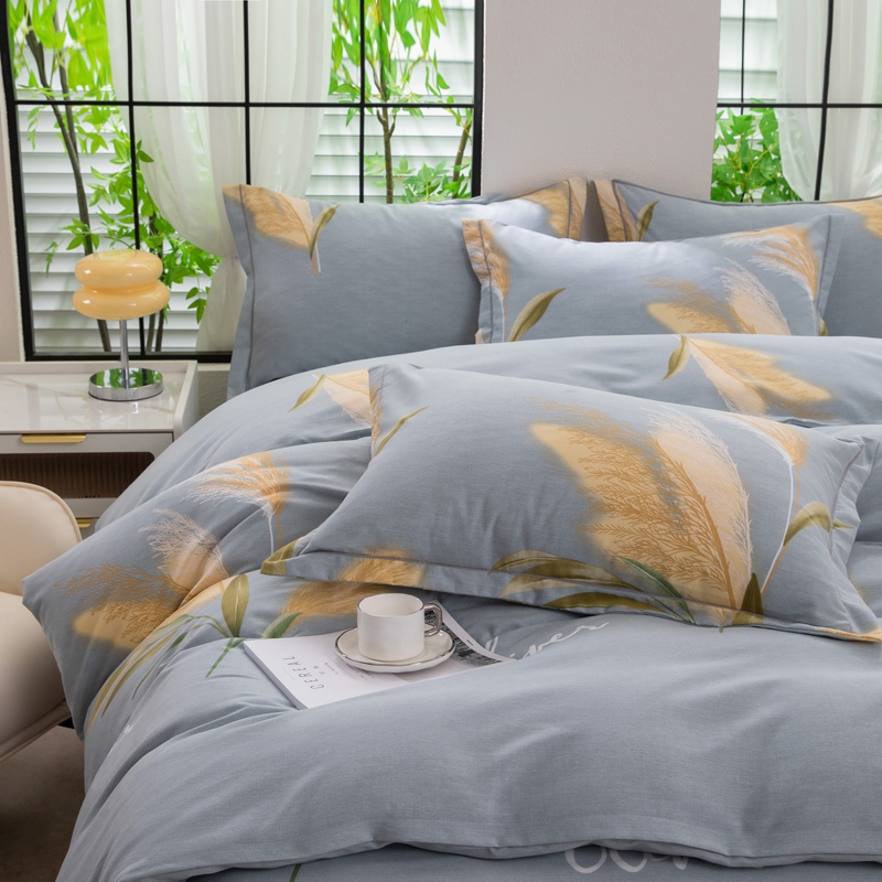 木易家居2026新款全棉磨毛印花四件套 香语芦苇