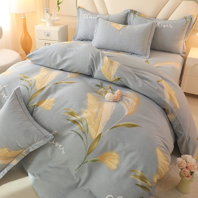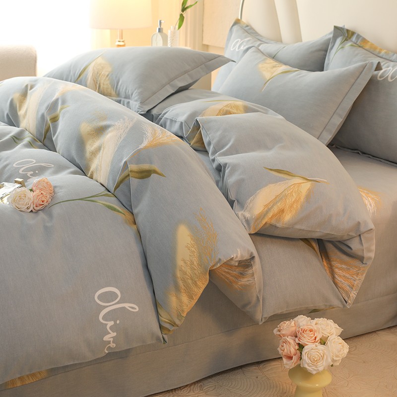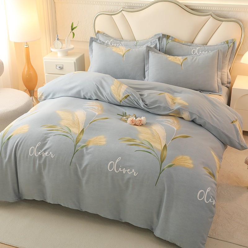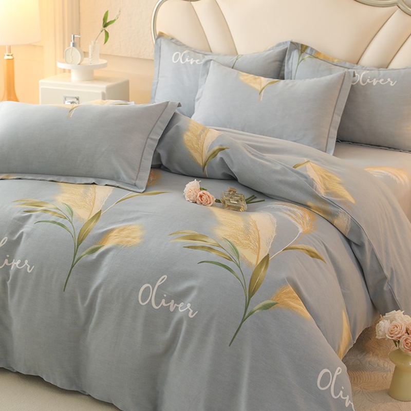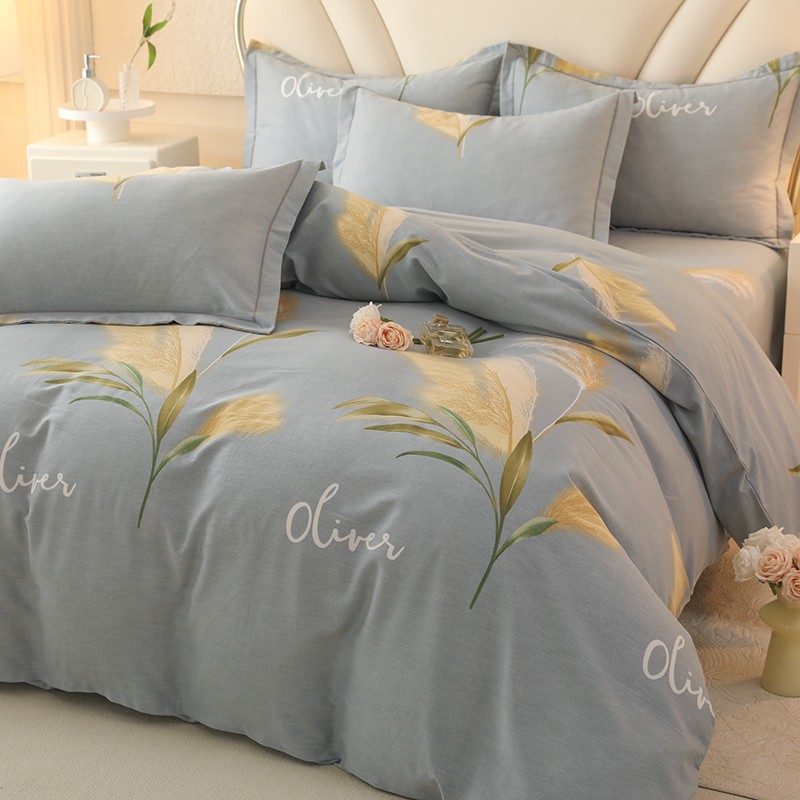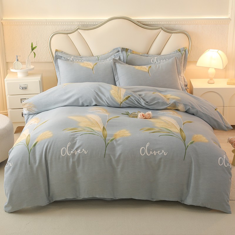 木易家居2026新款全棉磨毛印花四件套 香语芦苇