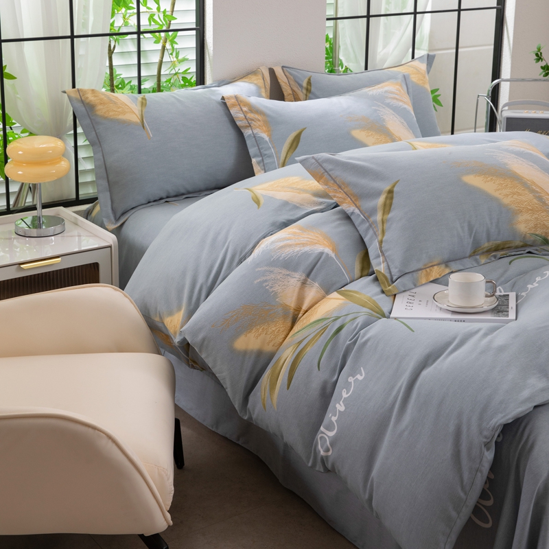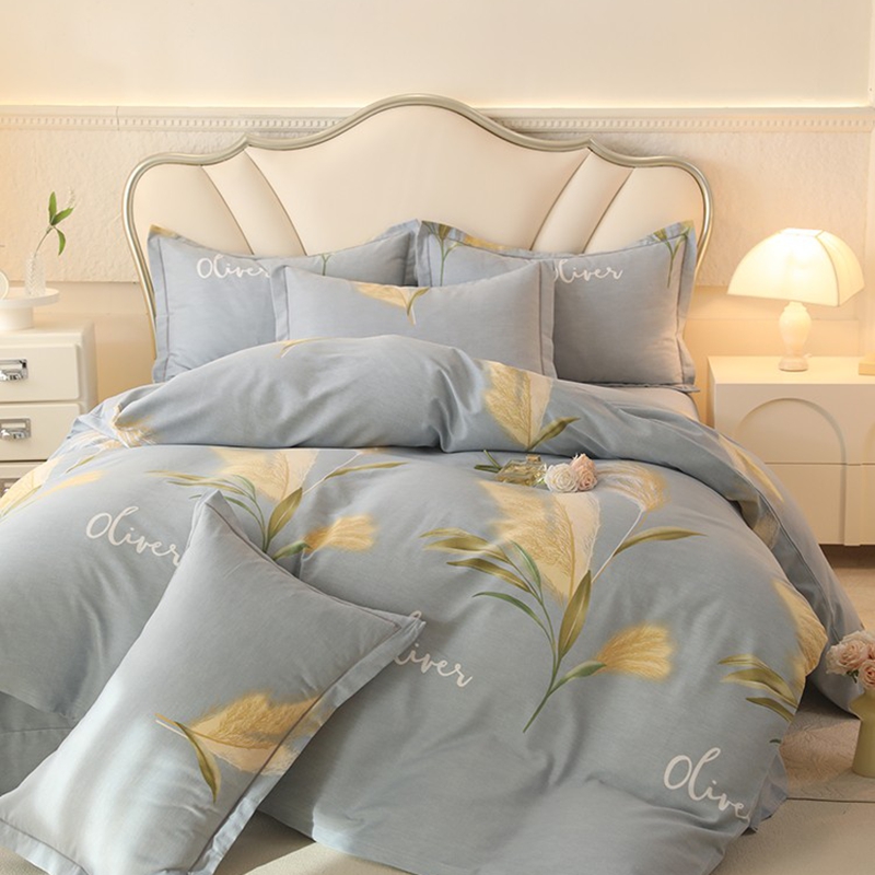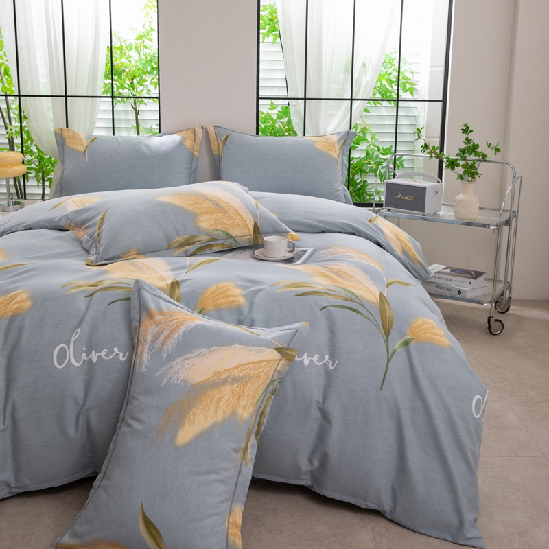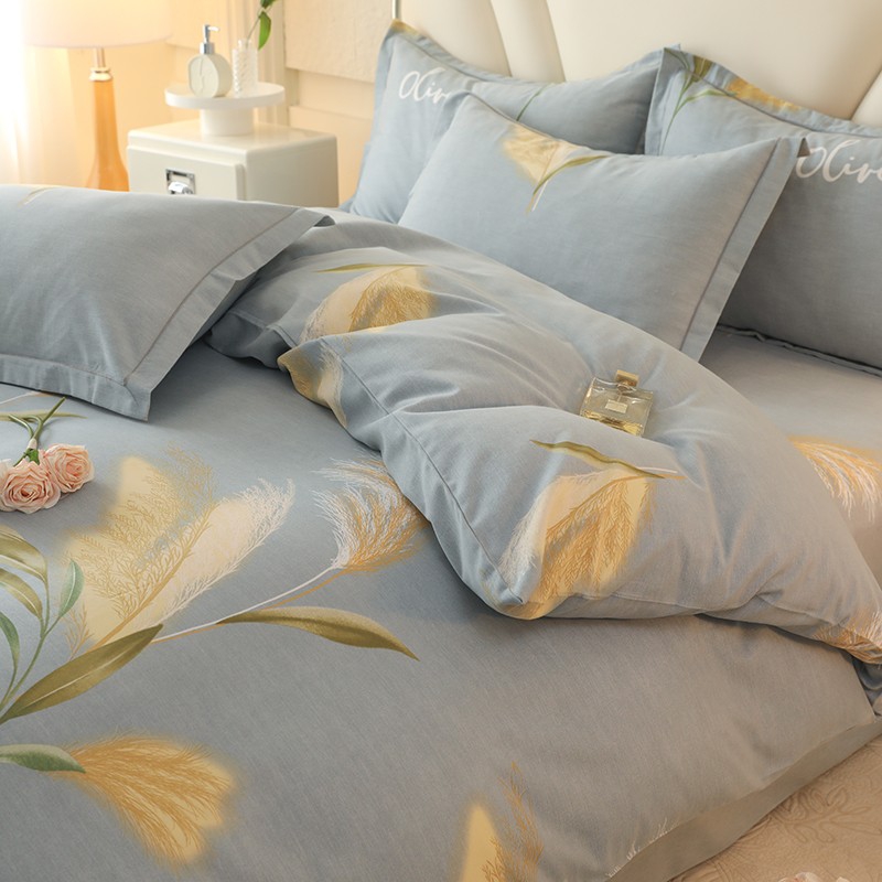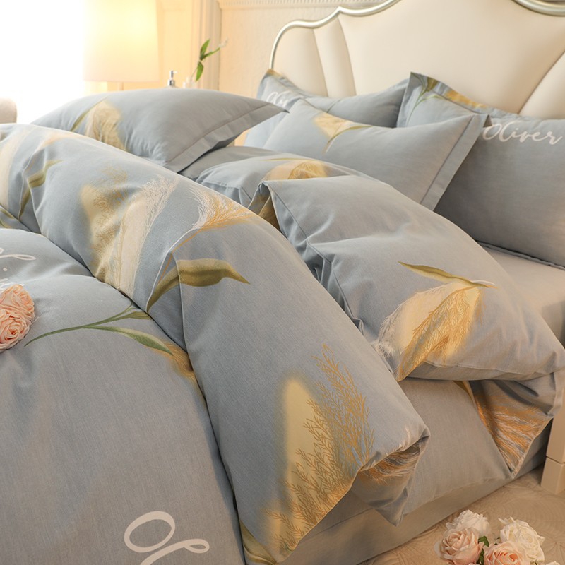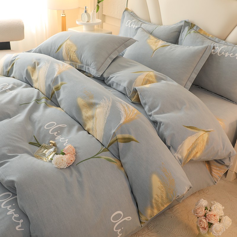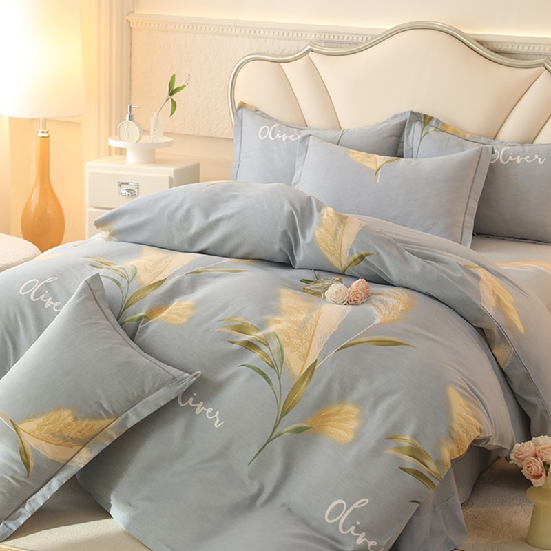 木易家居2026新款全棉磨毛印花四件套 香语芦苇