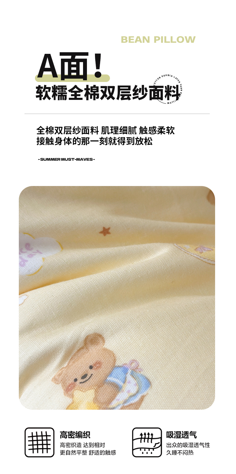 商品名称:北鸣有鱼枕芯馆 2025新款漫画家系列全棉双层纱豆豆枕枕头枕芯 面包熊-45x70cm