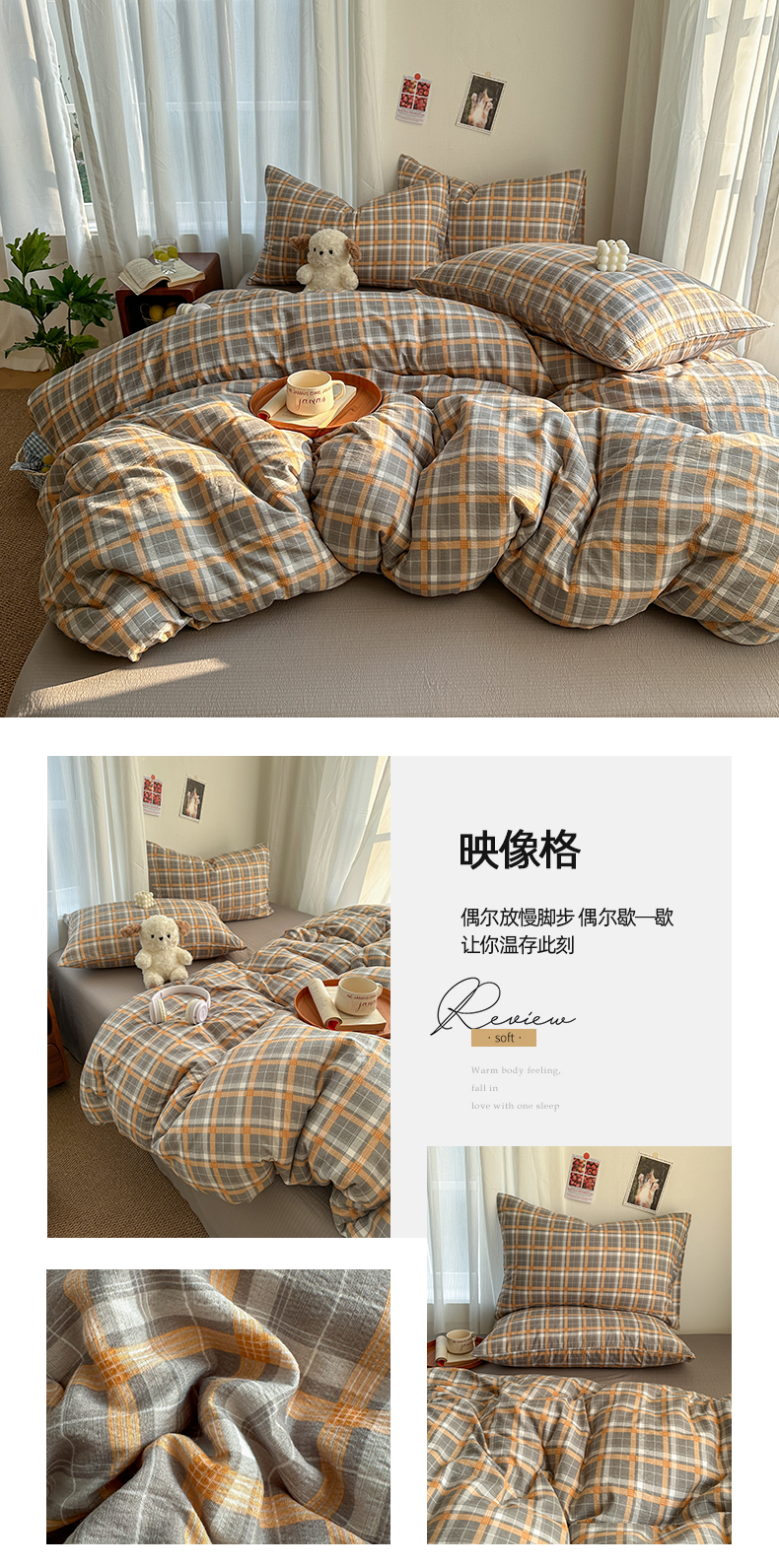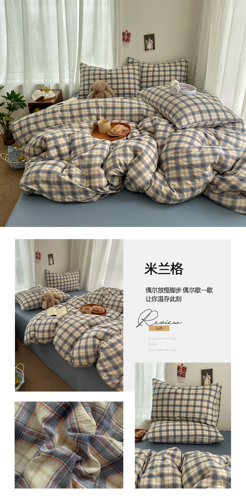 当前位置: 91家纺网 > 商品网购 > 床品套件 > 四件套 > 双层纱四件套 > 思诺羽床笠 2026新款亲肤云朵双层纱无印风水洗棉三件套四件套 科隆绿格