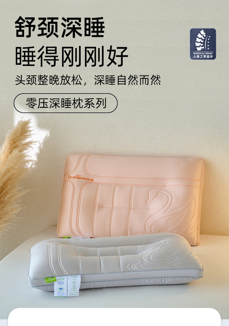 (总)帝诺妮枕芯坊 2025新款酸枣壳羽丝护颈枕枕头枕芯,粉色,灰色,白色