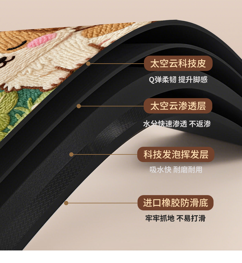 商品名称:卡初家居(原微来) 2025新款吸水吸油防滑硅藻泥地垫垫子-卡通系列 G-1748