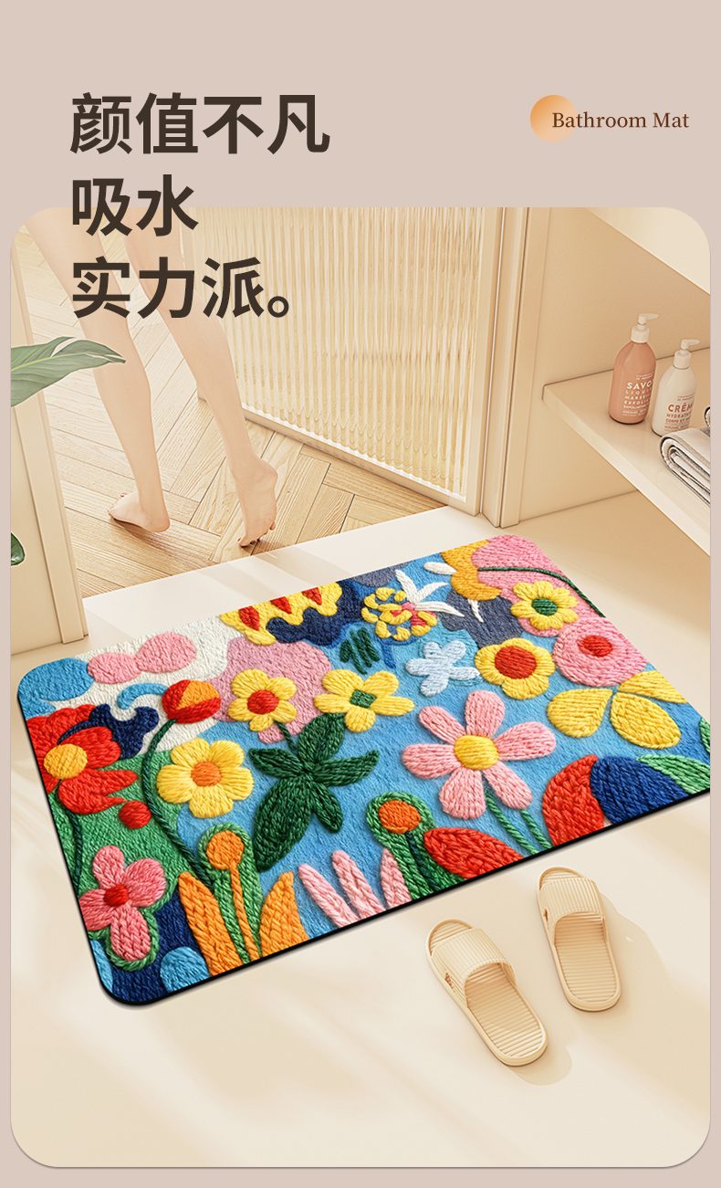 (总)卡初家居(原微来) 2025新款吸水吸油防滑硅藻泥地垫垫子-花卉系列,G-1580,G-1582,G-1583,G-1589,G-1593,G-1597,G-1716,G-1717,G-1718,G-1719,G-1720,G-1721