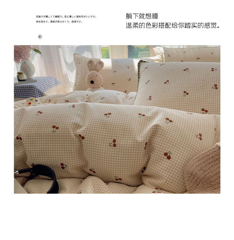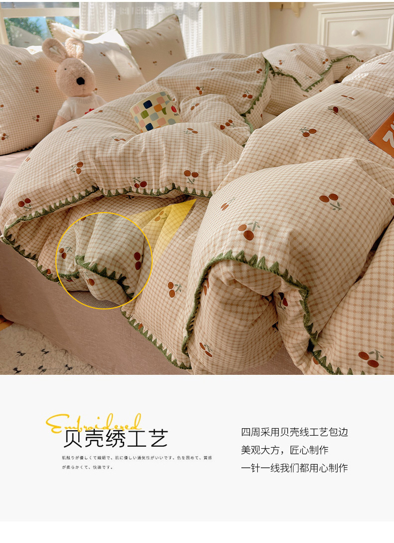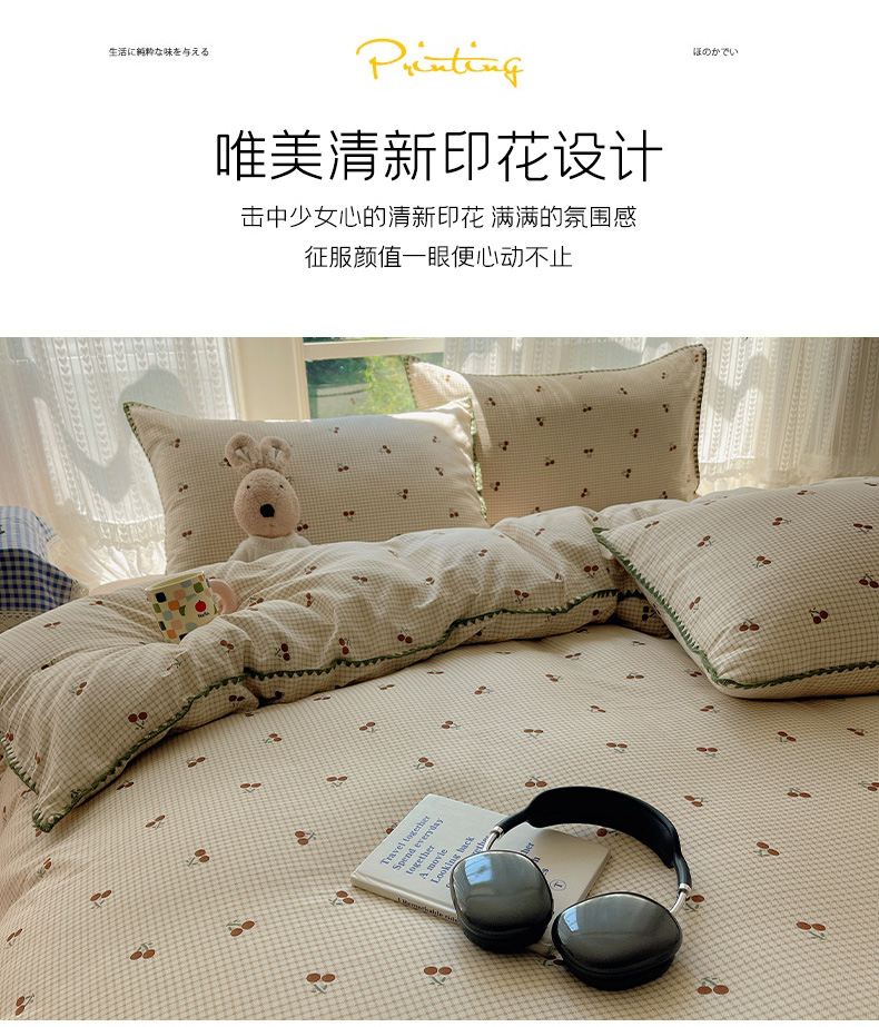 (总)瑞莱 2026新款A类全棉纯棉有氧双层纱四件套,白熊小姐,彩色木马,淡彩花笺,费尔岛小熊,焦糖奶汪-桔,焦糖奶汪-绿,萌星,苹果星星人,小樱桃,樱桃画报