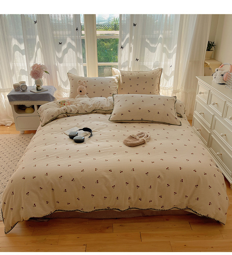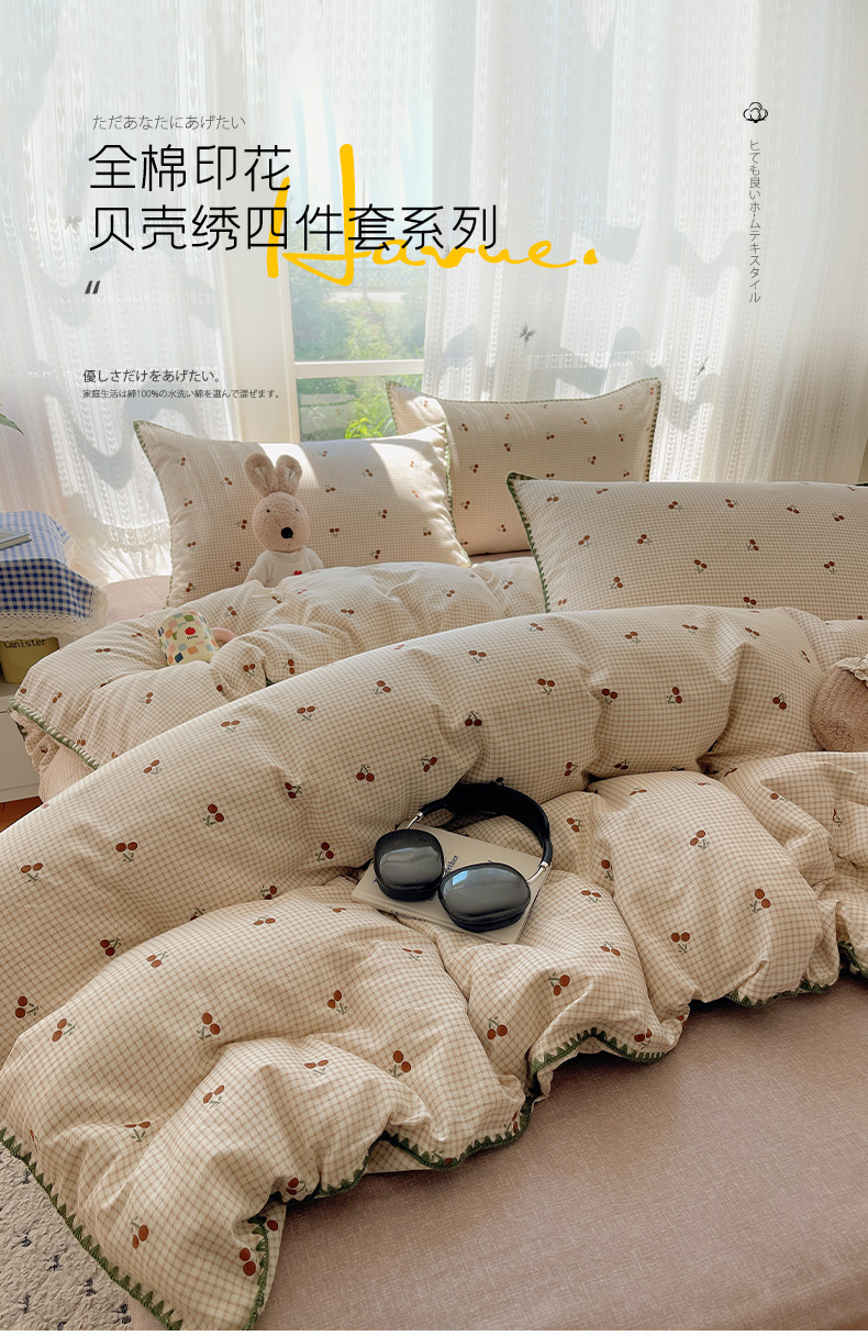 商品名称:瑞莱 2026新款全棉印花贝壳边四件套 樱姿-米