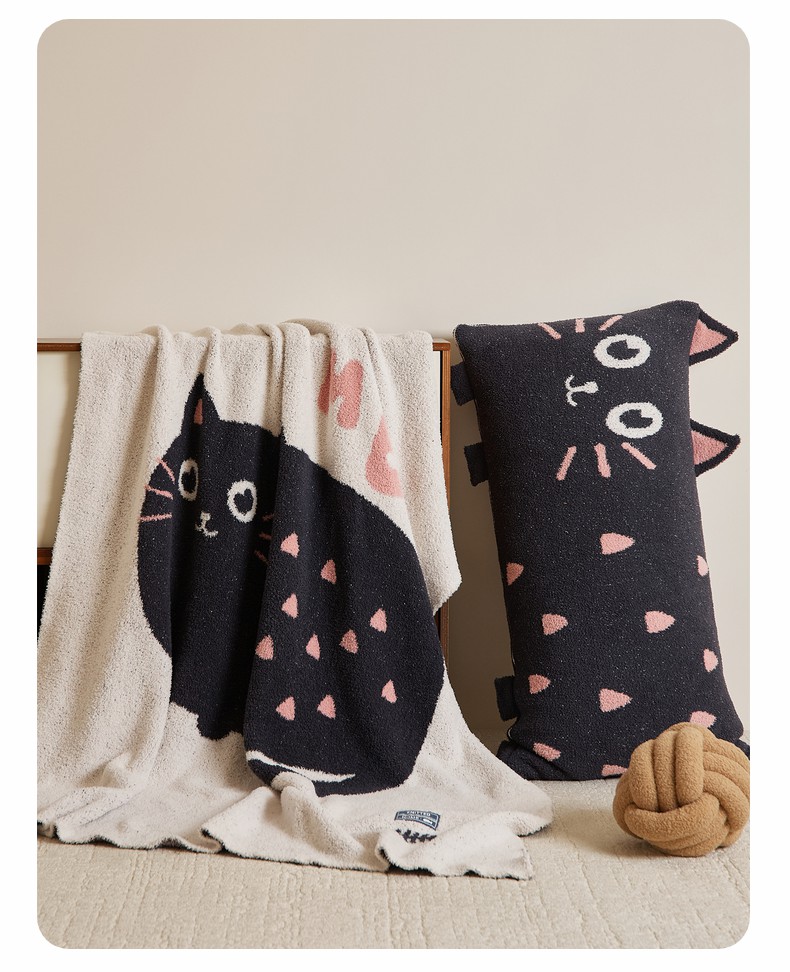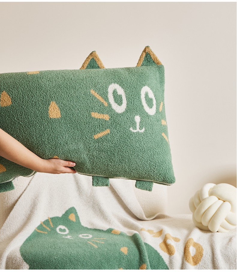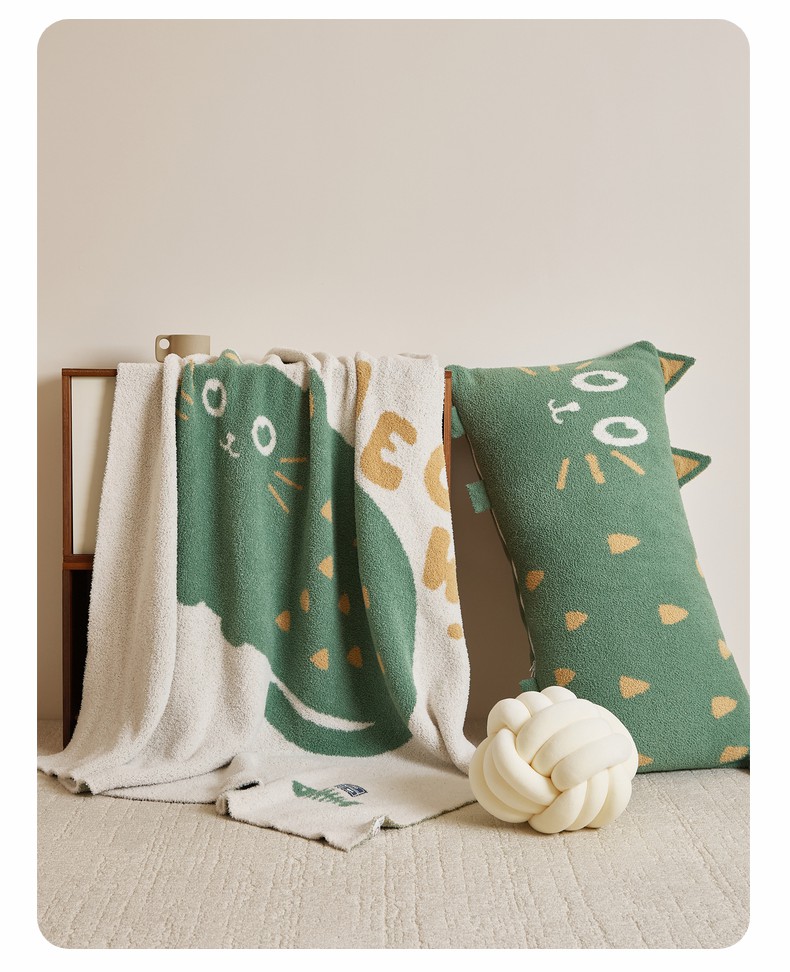 暖绵绵家纺 2025新款毛茸茸小猫毯子毛毯抱枕含芯-黑糖【券后最低零售价:毯子173元、抱枕(含芯)153元】 黑糖毯子-暗绿色