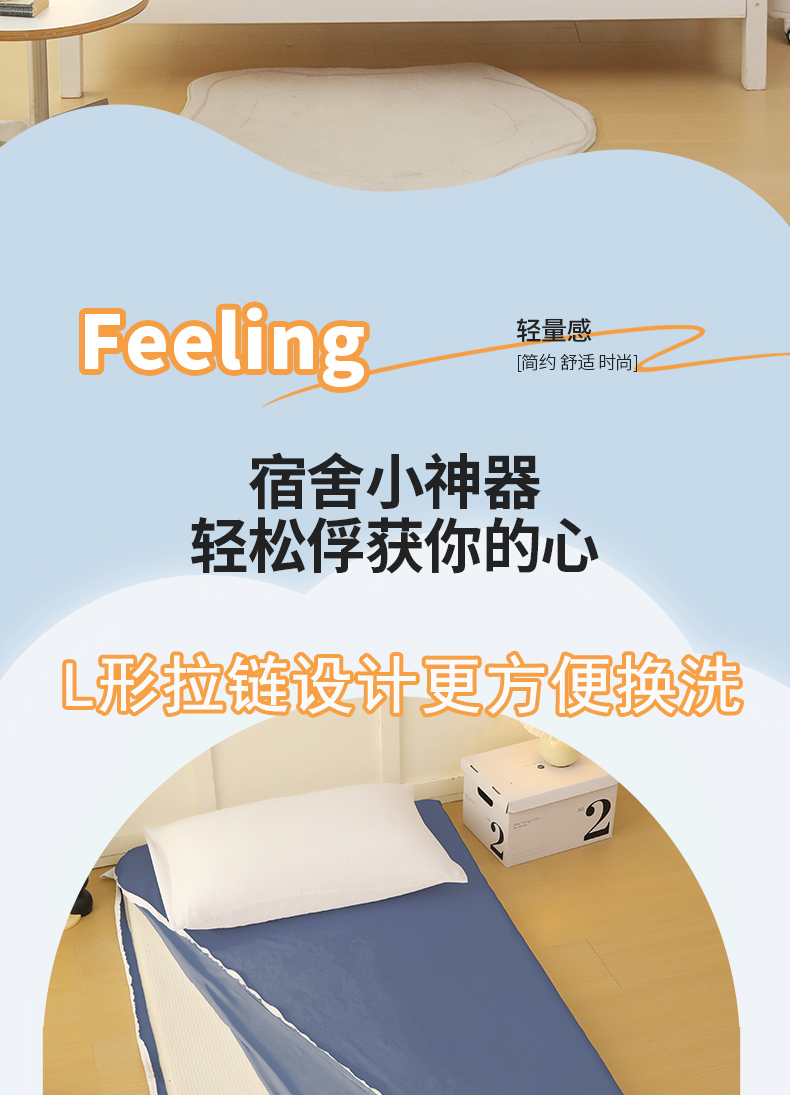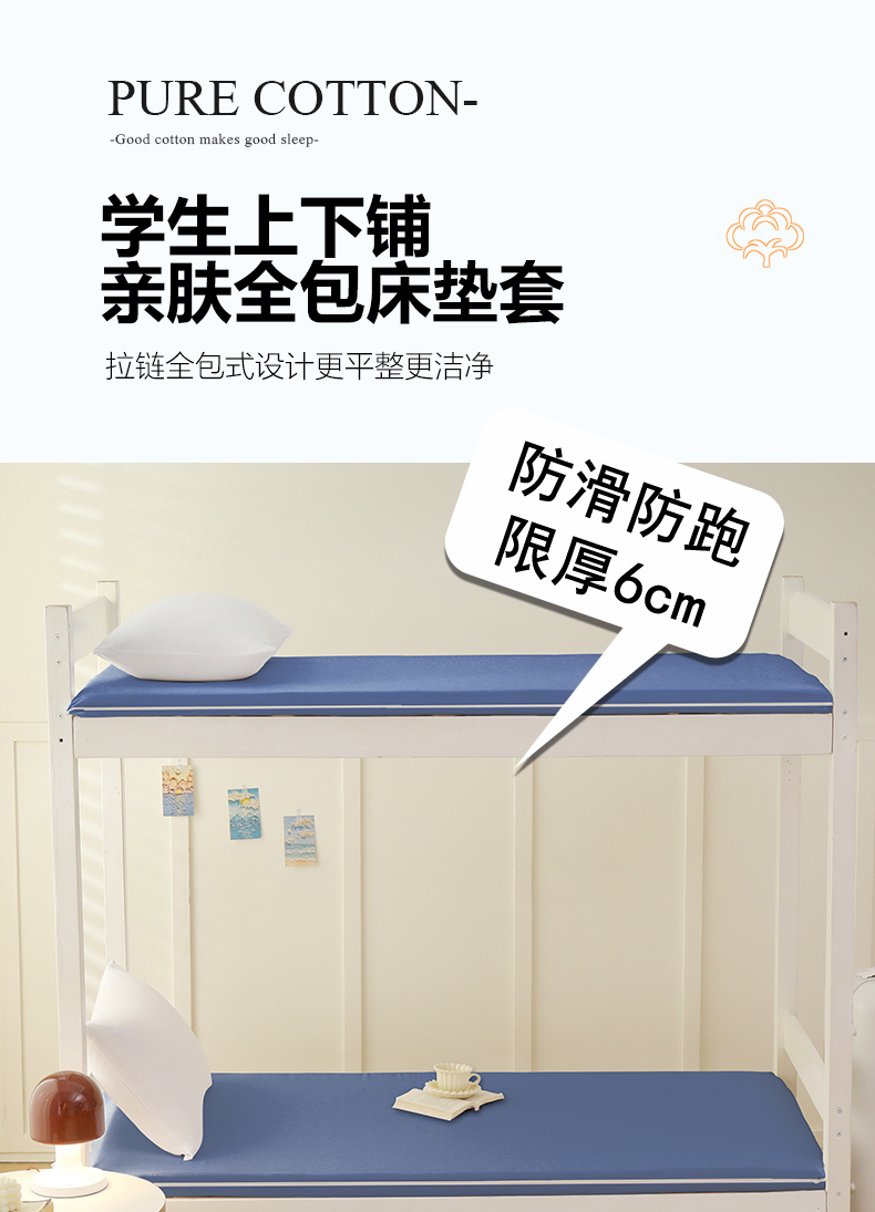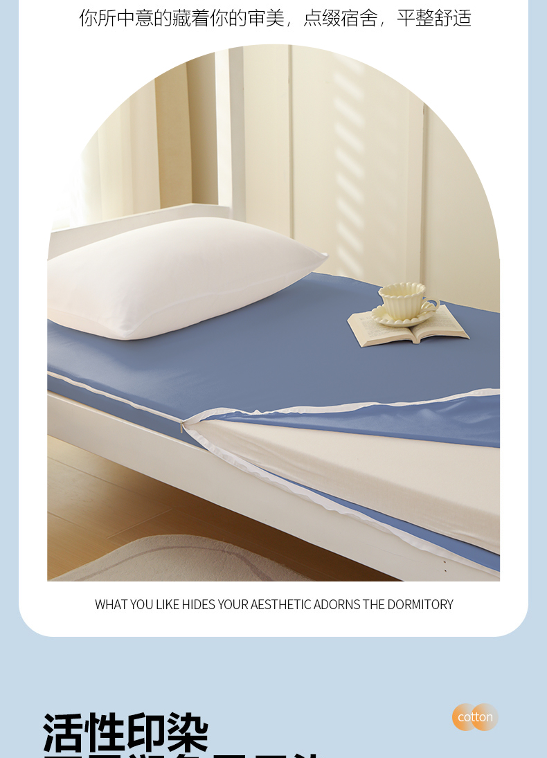 啊雅家居 2026新款L形拉链全包床垫套学生宿舍家用被褥套 蓝色