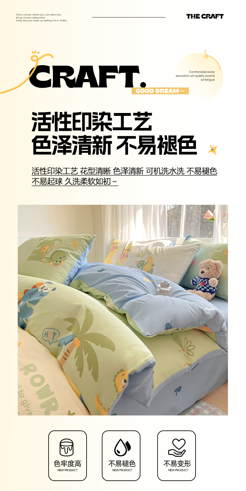 商品名称:吉象家纺 2026新款高支密全棉印花四件套 度假恐龙