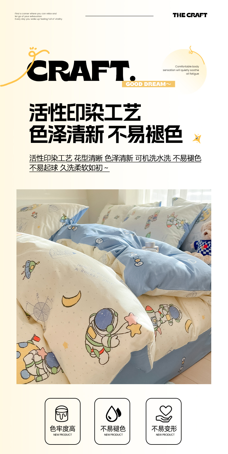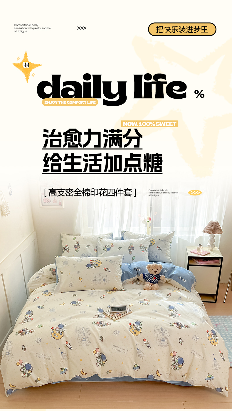 吉象家纺 2026新款高支密全棉印花四件套 星际仔仔