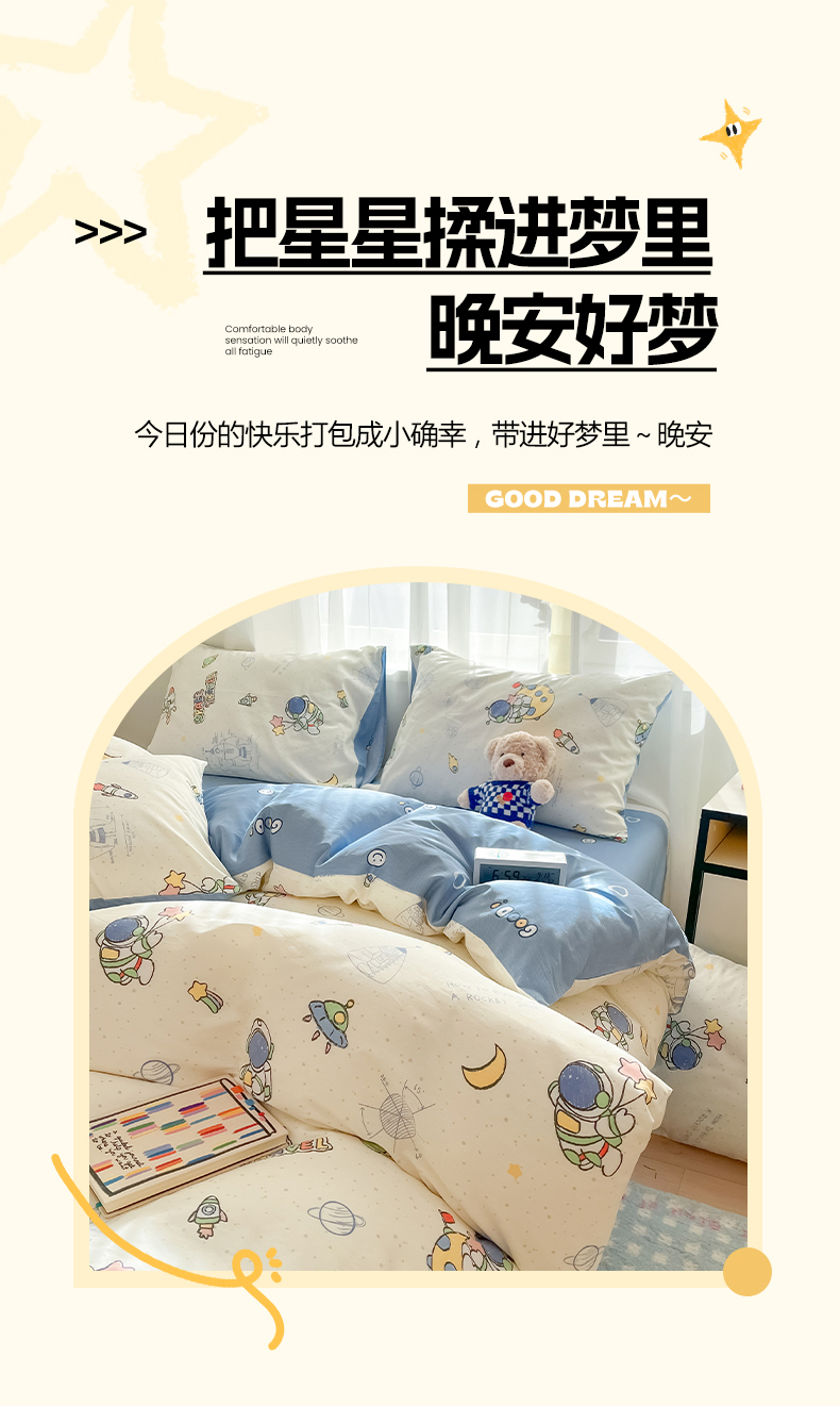 商品名称:吉象家纺 2026新款高支密全棉印花四件套 星际仔仔