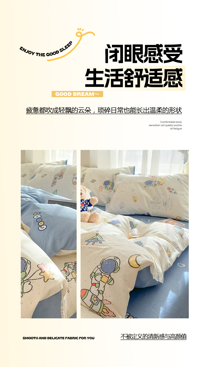 (总)吉象家纺13070全棉四件套纯棉四件套直播小清新男孩女,太空旅行,环游太空,汽车嘟嘟,汽车向导,趣味恐龙,快乐星球,宝宝巴士,小情调,漫画家,恐龙乐园,炫彩狗,卡皮巴拉,兰心小熊,工程车,郁金香粉兔,春野,心动,遇见爱,小黑猫,蜡笔画,靴子猫,微笑天团,蓝茵,奔跑兔,草莓格,cat猫,腊肠犬