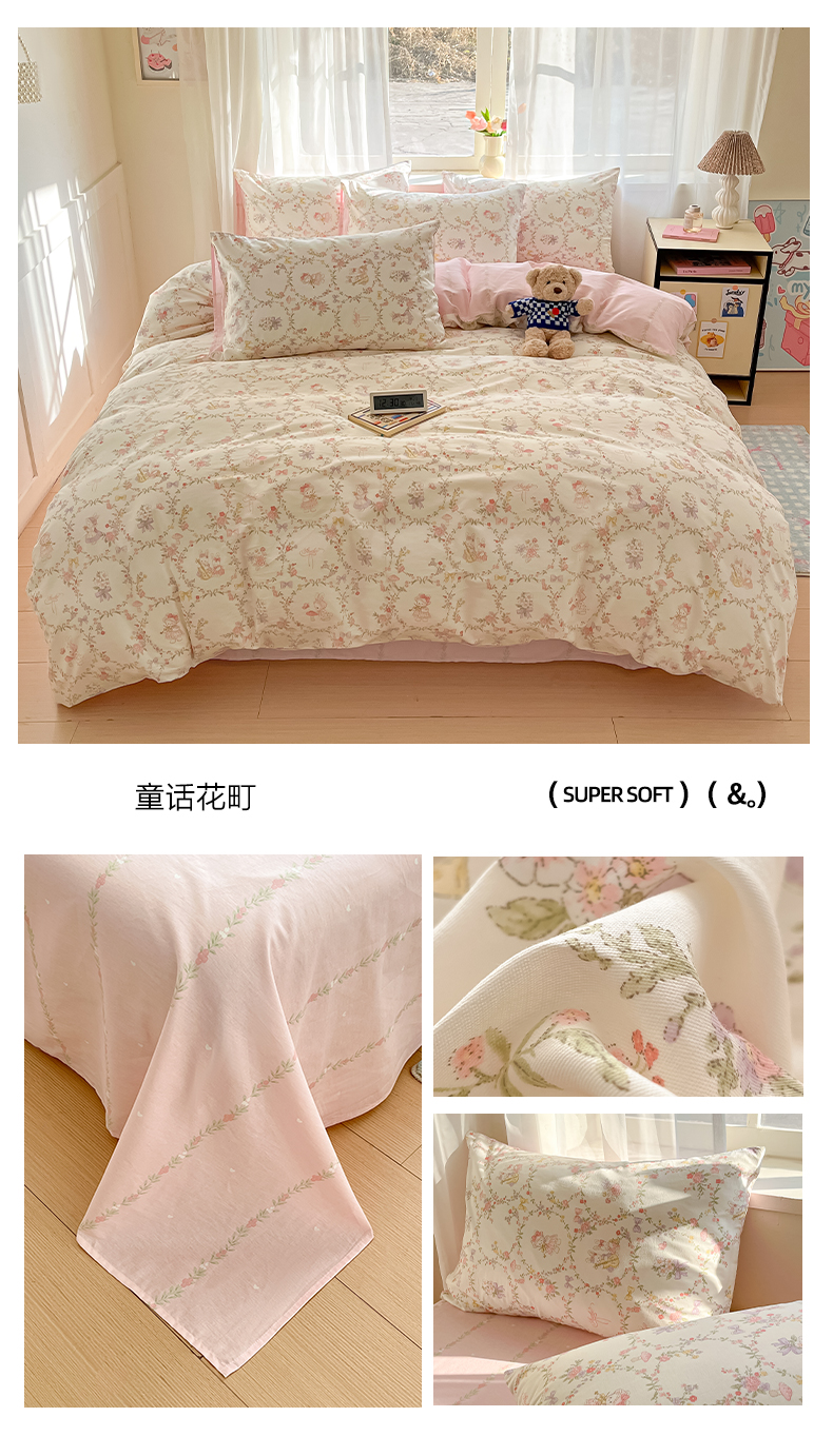 (总)吉象家纺 2024新款全棉双层纱四件套叠拍田园风直播电商品质优选,草莓小兔,粉郁,国风,花千朵,花枝兔,露娜,奶油派,晴天,运动小熊,紫郁