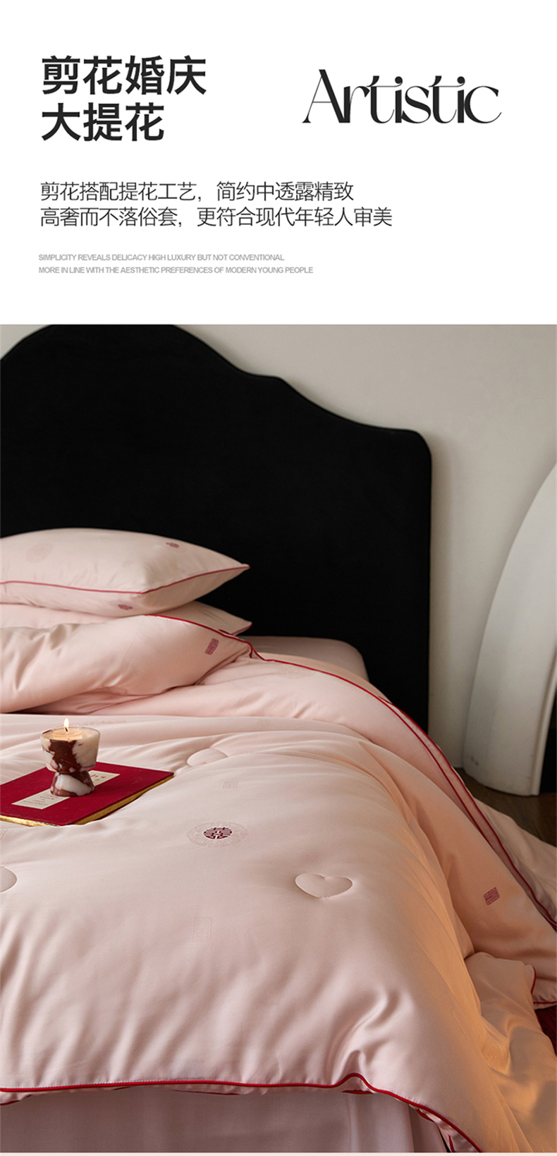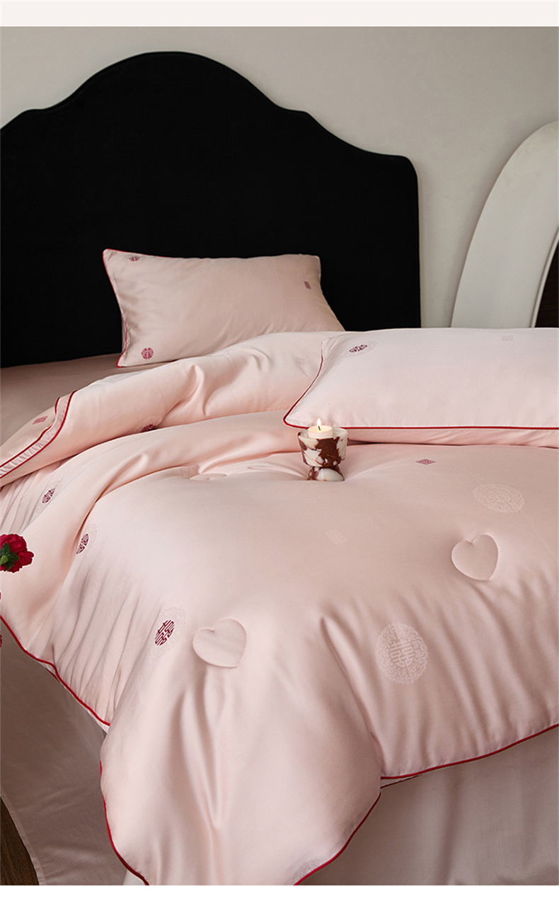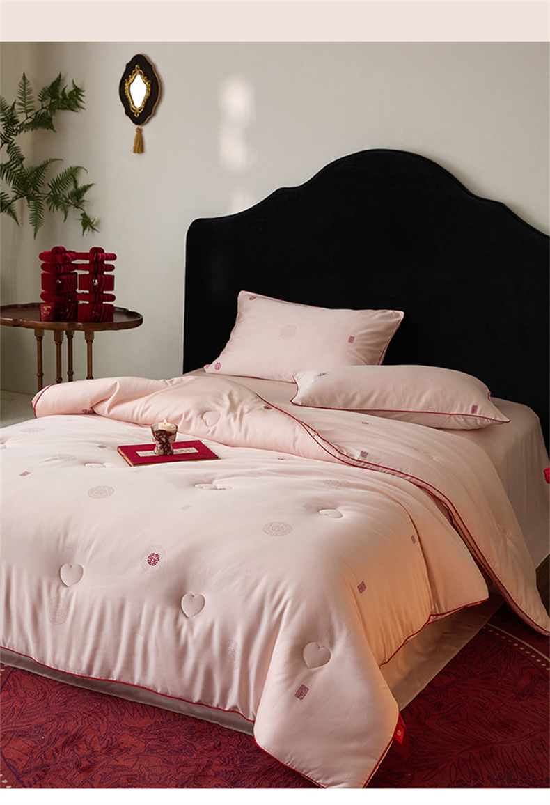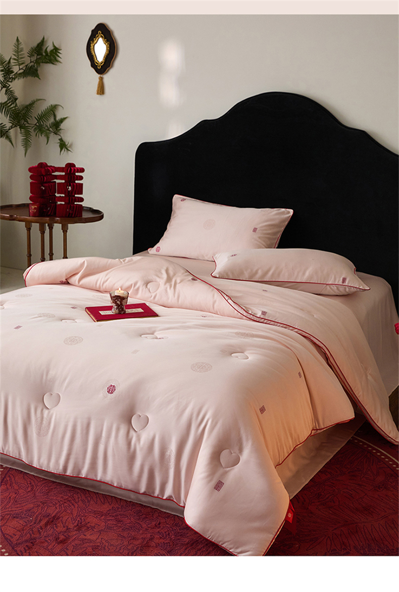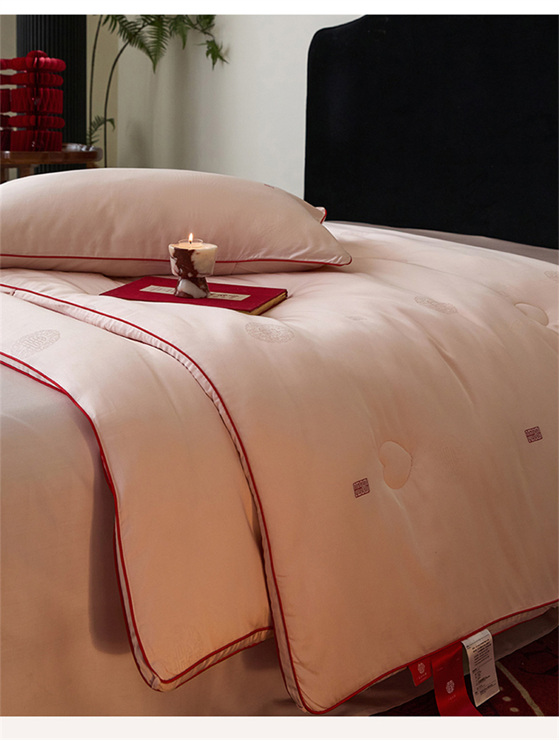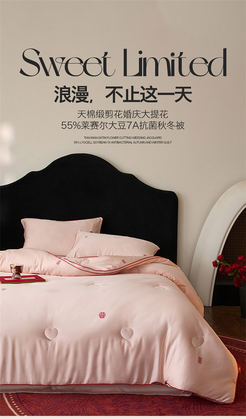 商品名称:头等舱 2025新款天棉缎剪花婚庆大提花55莱赛尔大豆7A抗菌秋冬被(空境图) 吾家有喜-嫩粉
