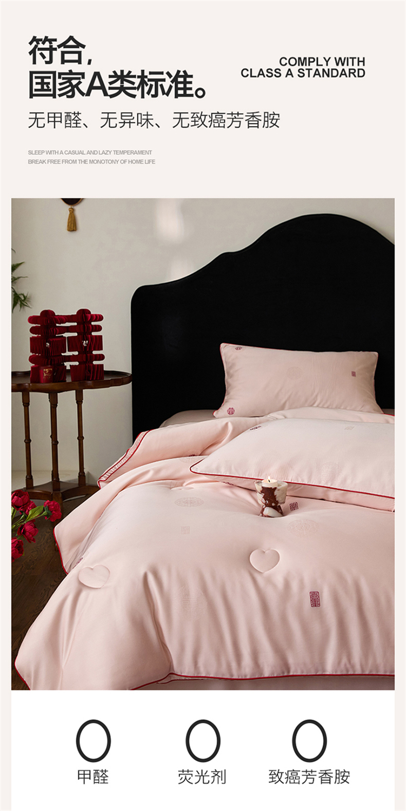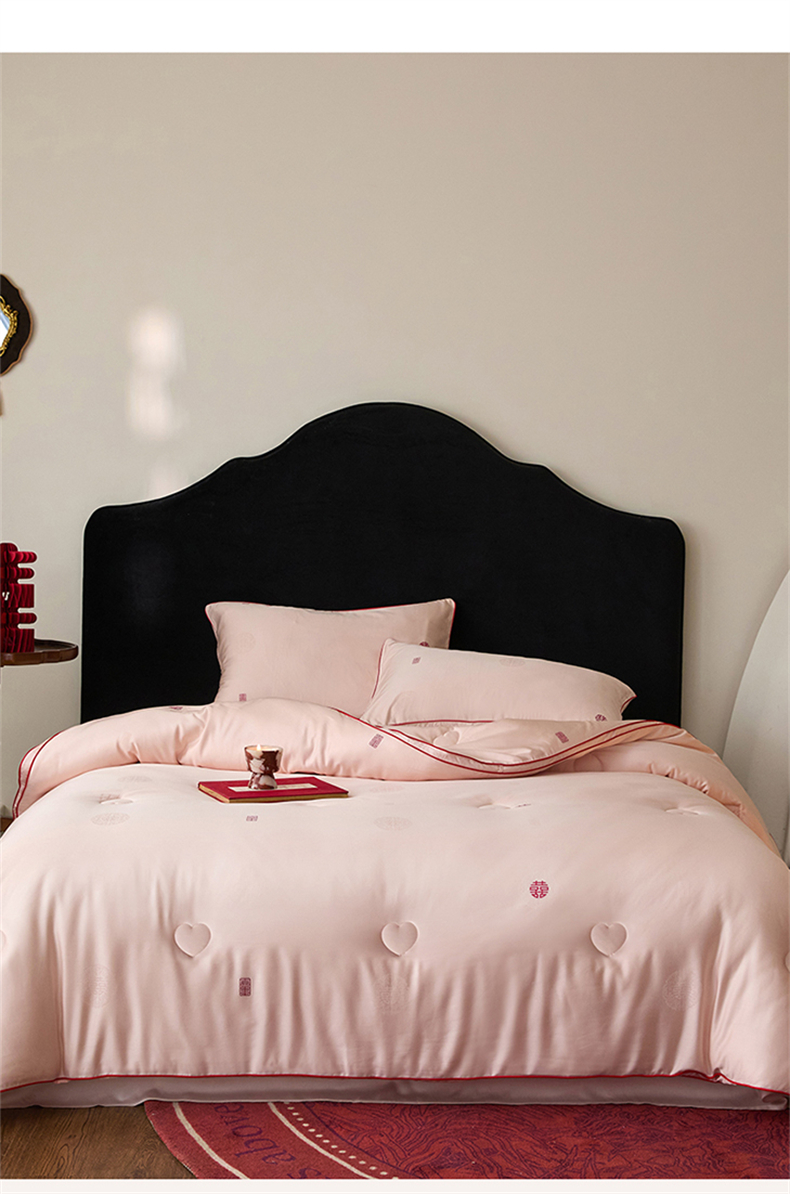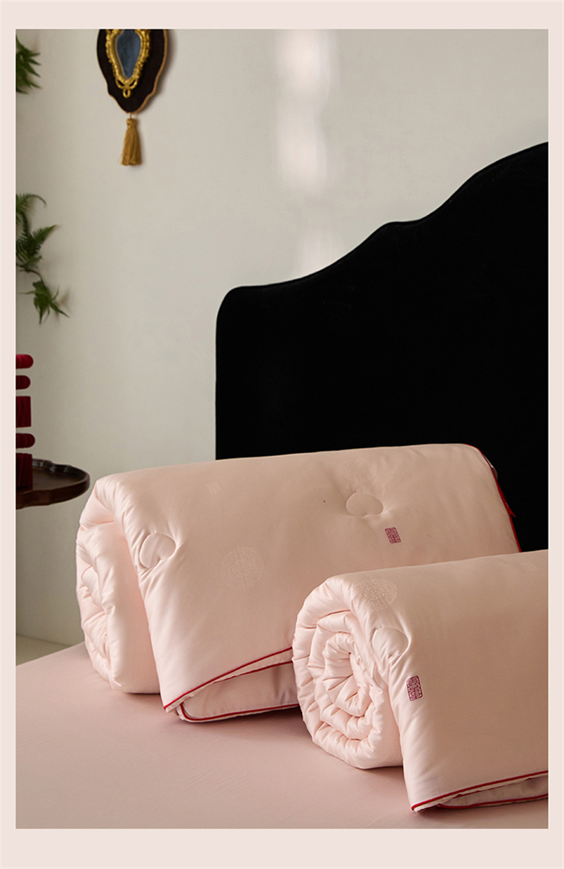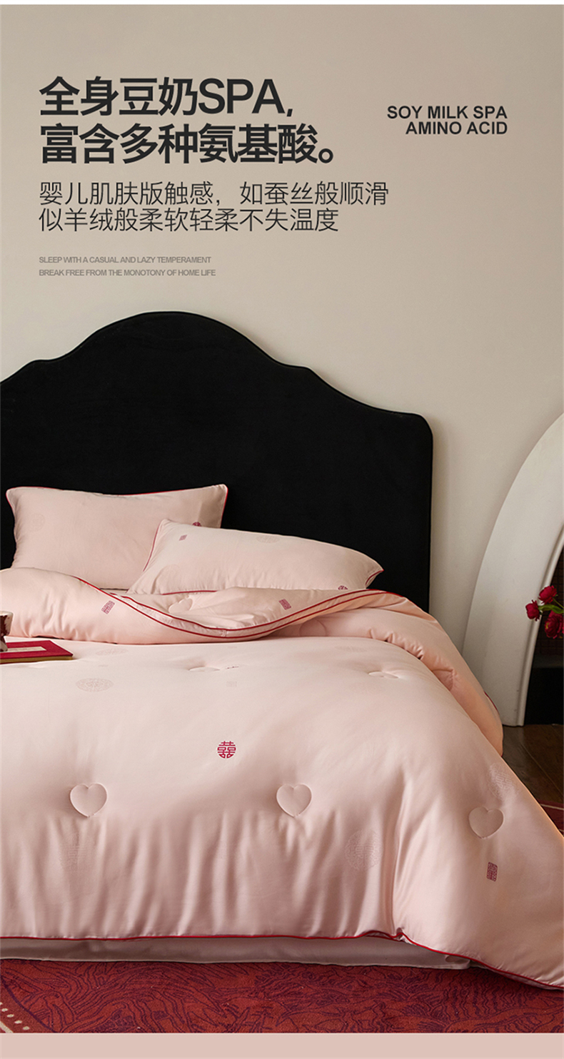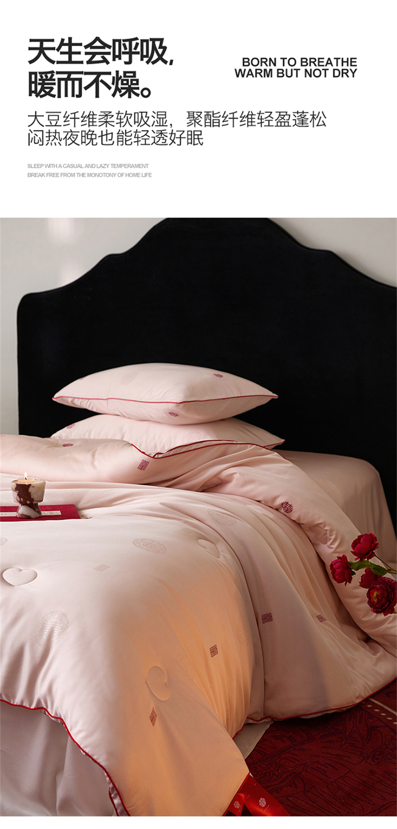 商品名称:头等舱 2025新款天棉缎剪花婚庆大提花55莱赛尔大豆7A抗菌秋冬被(空境图) 吾家有喜-嫩粉