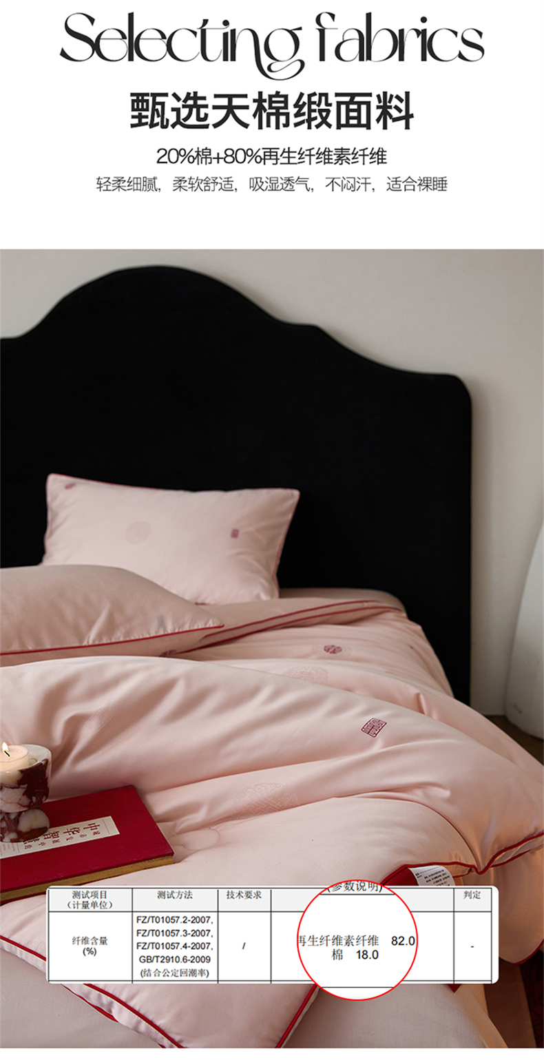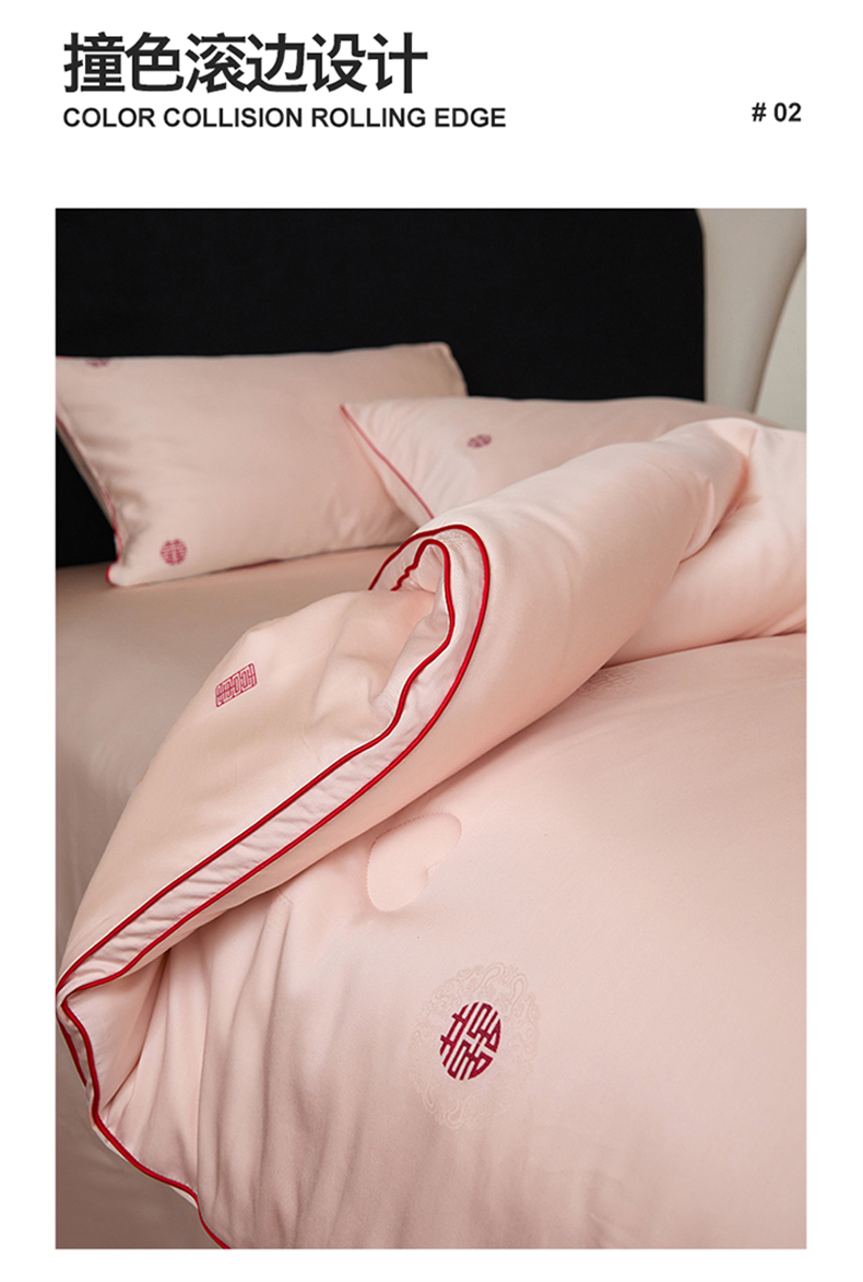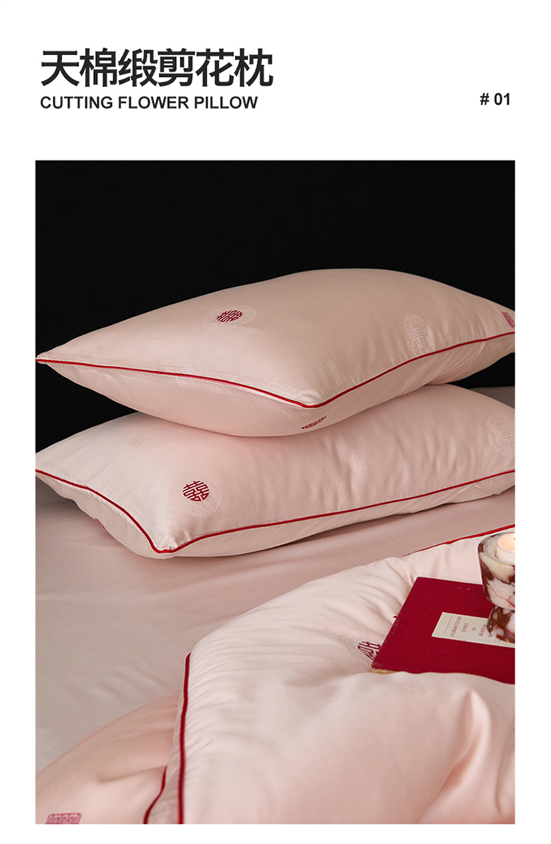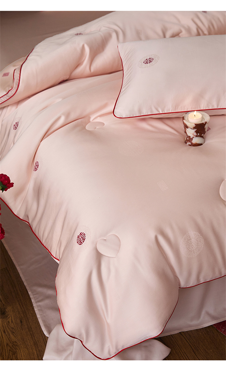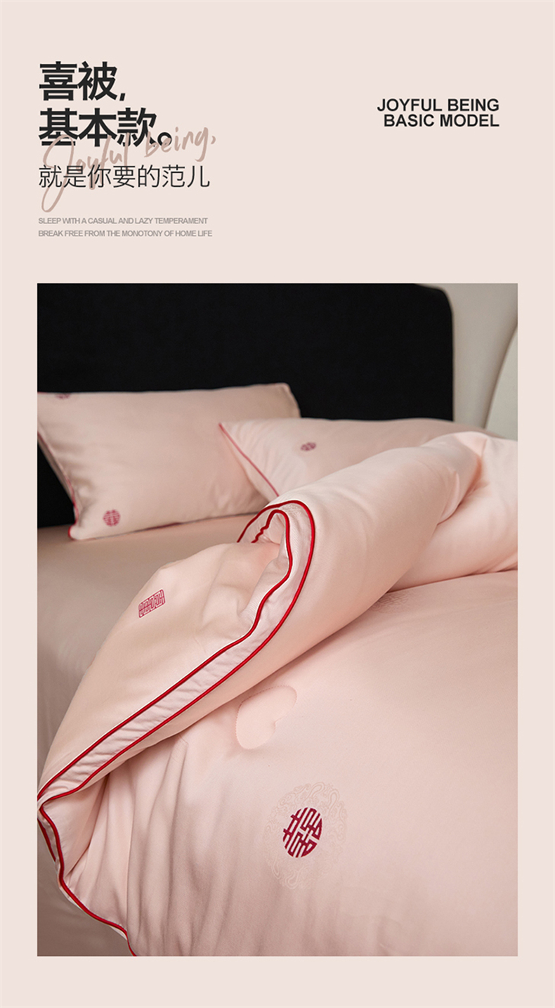 商品名称:头等舱 2025新款天棉缎剪花婚庆大提花55莱赛尔大豆7A抗菌秋冬被(空境图) 吾家有喜-嫩粉