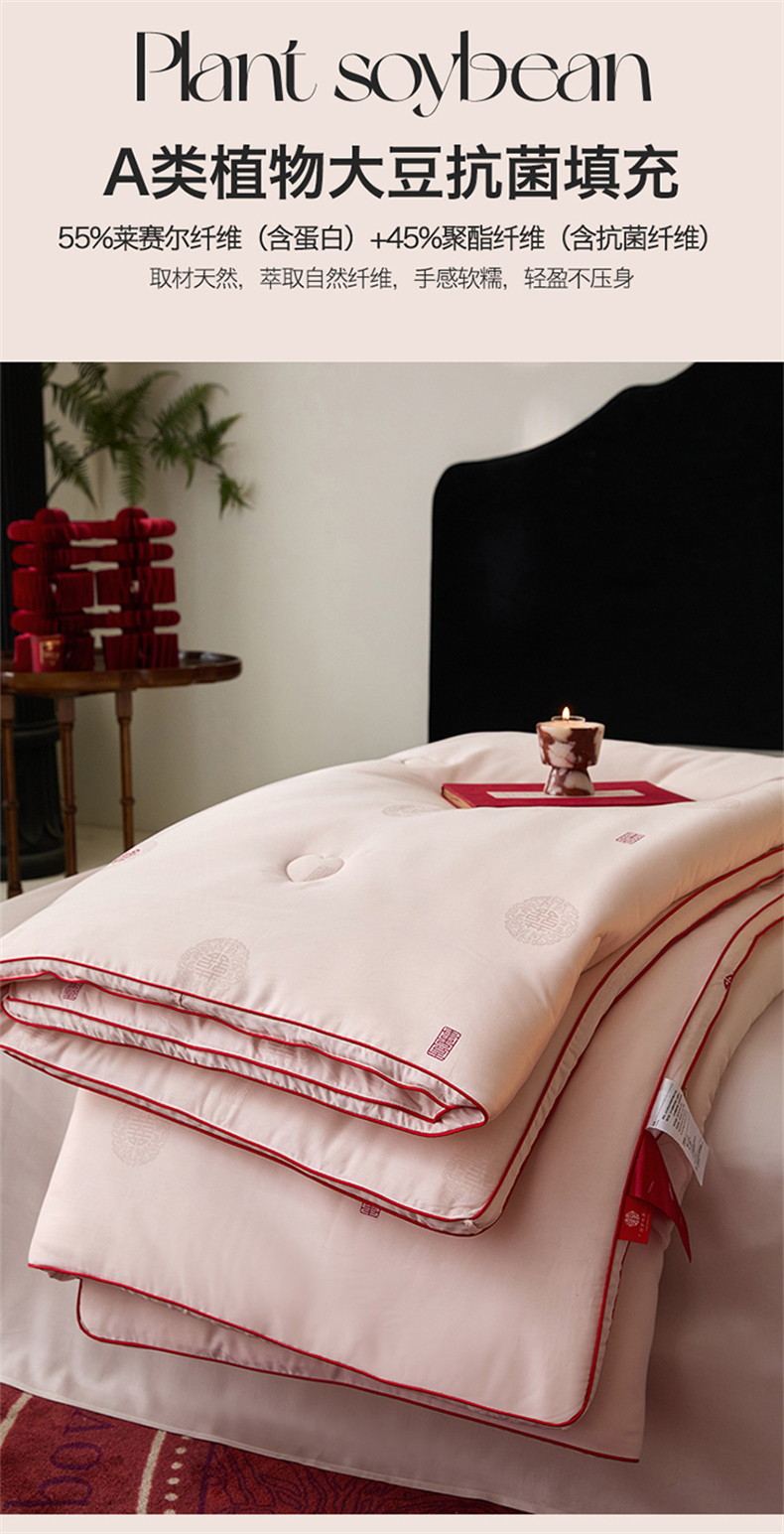 (总)头等舱 2025新款天棉缎剪花婚庆大提花55莱赛尔大豆7A抗菌秋冬被(模特图),吾家有喜-本白,吾家有喜-嫩粉,配包装