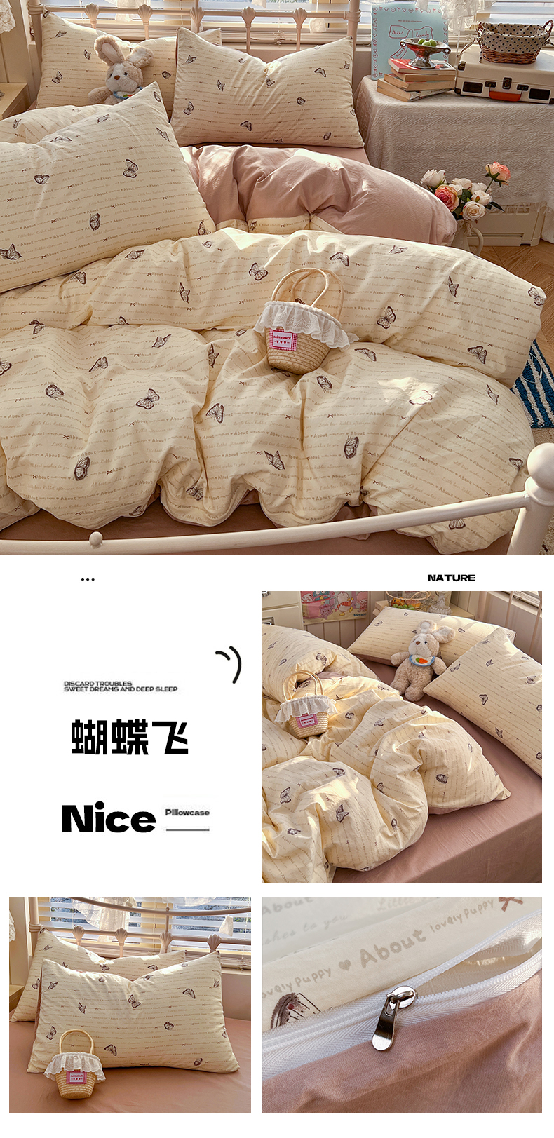 当前位置: 91家纺网 > 商品网购 > 床品套件 > 四件套 > 水洗棉四件套 > 玉海棠家纺 2026新款古法水洗仿棉云感纱四件套 初恋