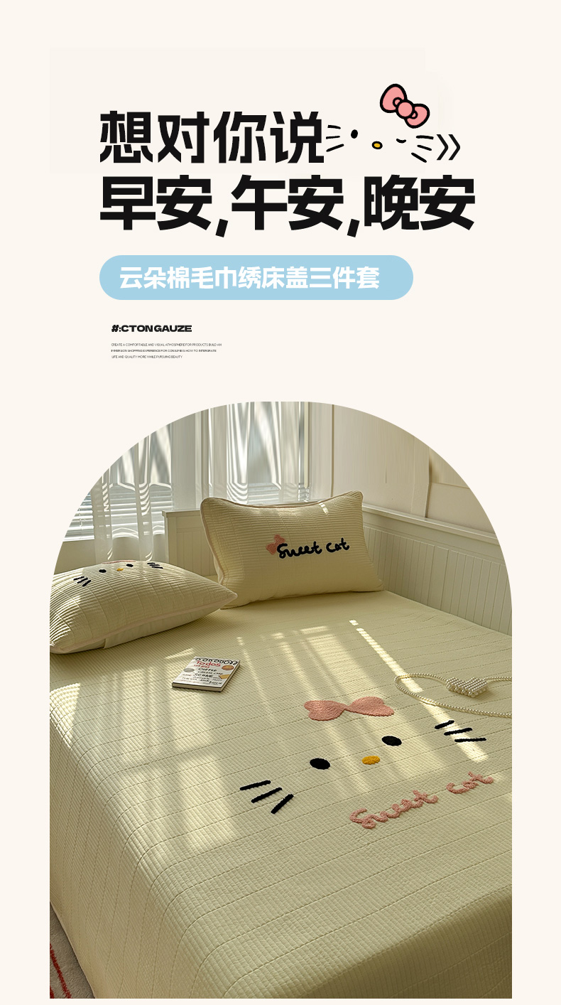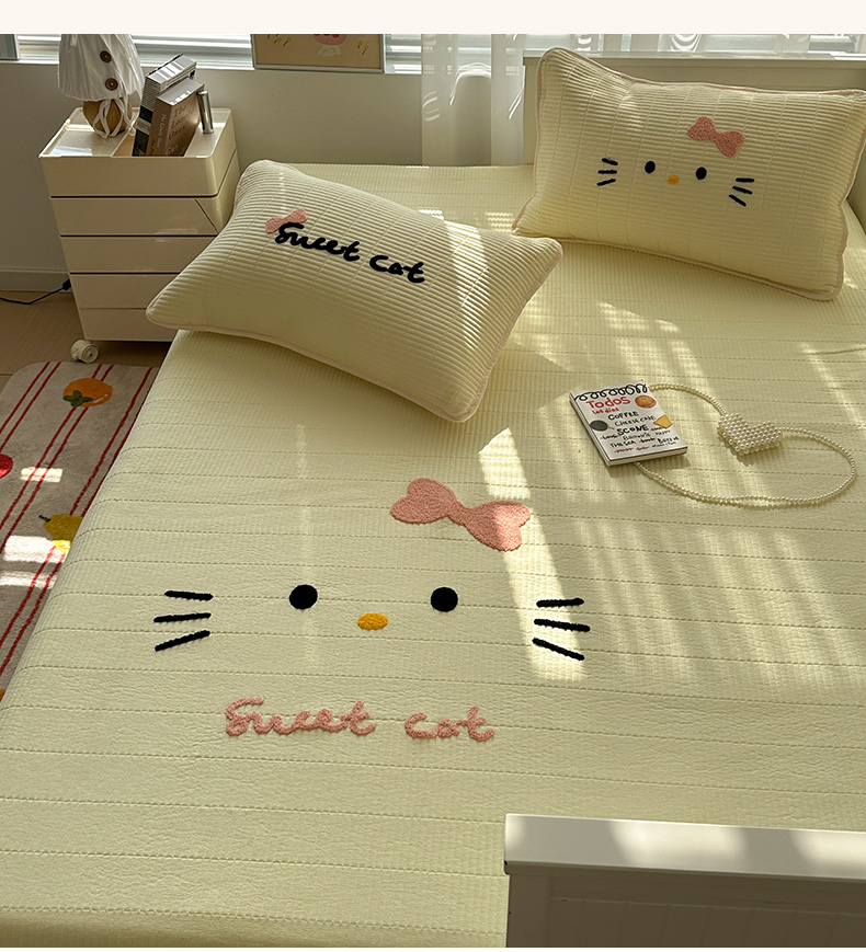 商品名称:繁花家居 2025新款云朵棉软到心坎可爱毛巾绣床盖,不跑床的加厚床单 喵喵-奶黄