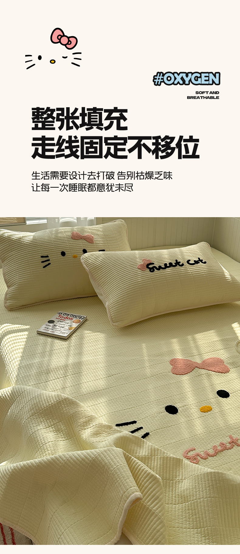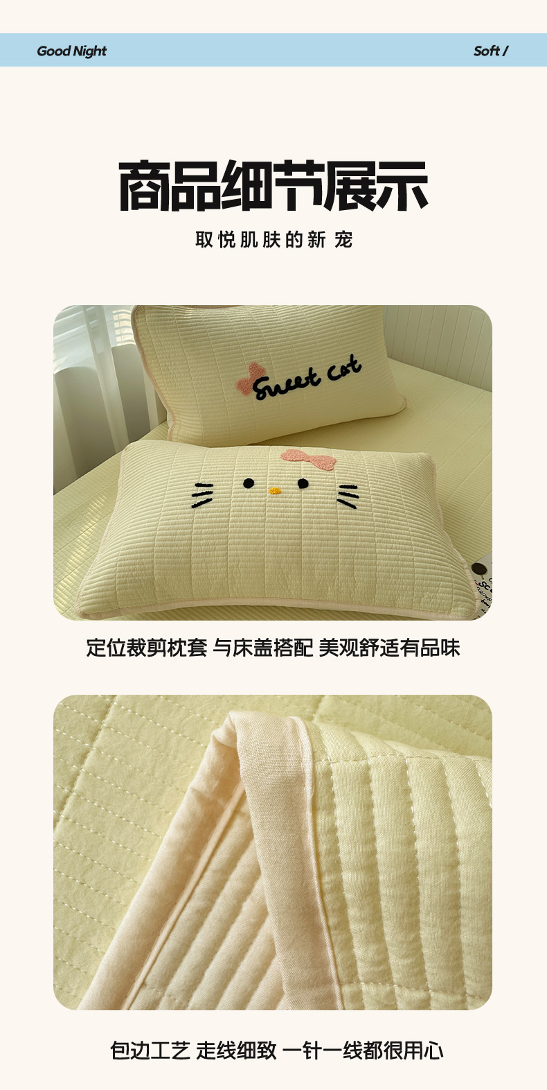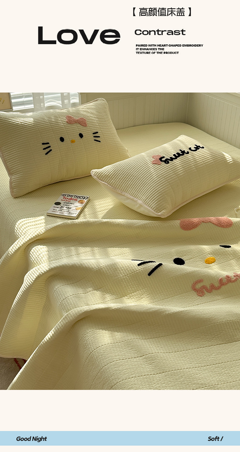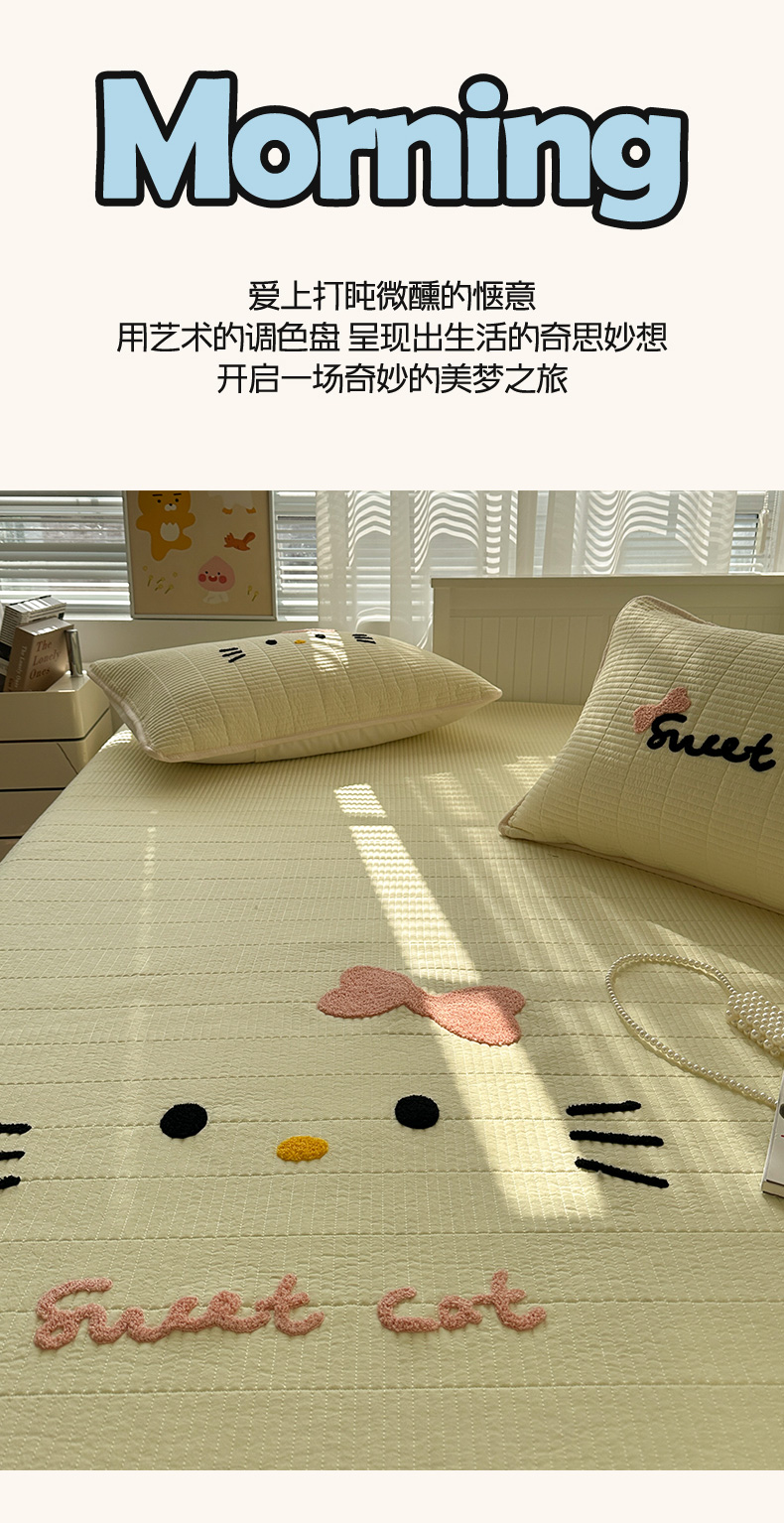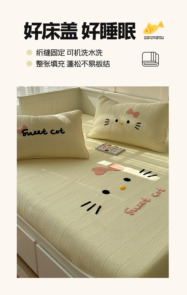 繁花家居 2025新款云朵棉软到心坎可爱毛巾绣床盖,不跑床的加厚床单 喵喵-奶黄