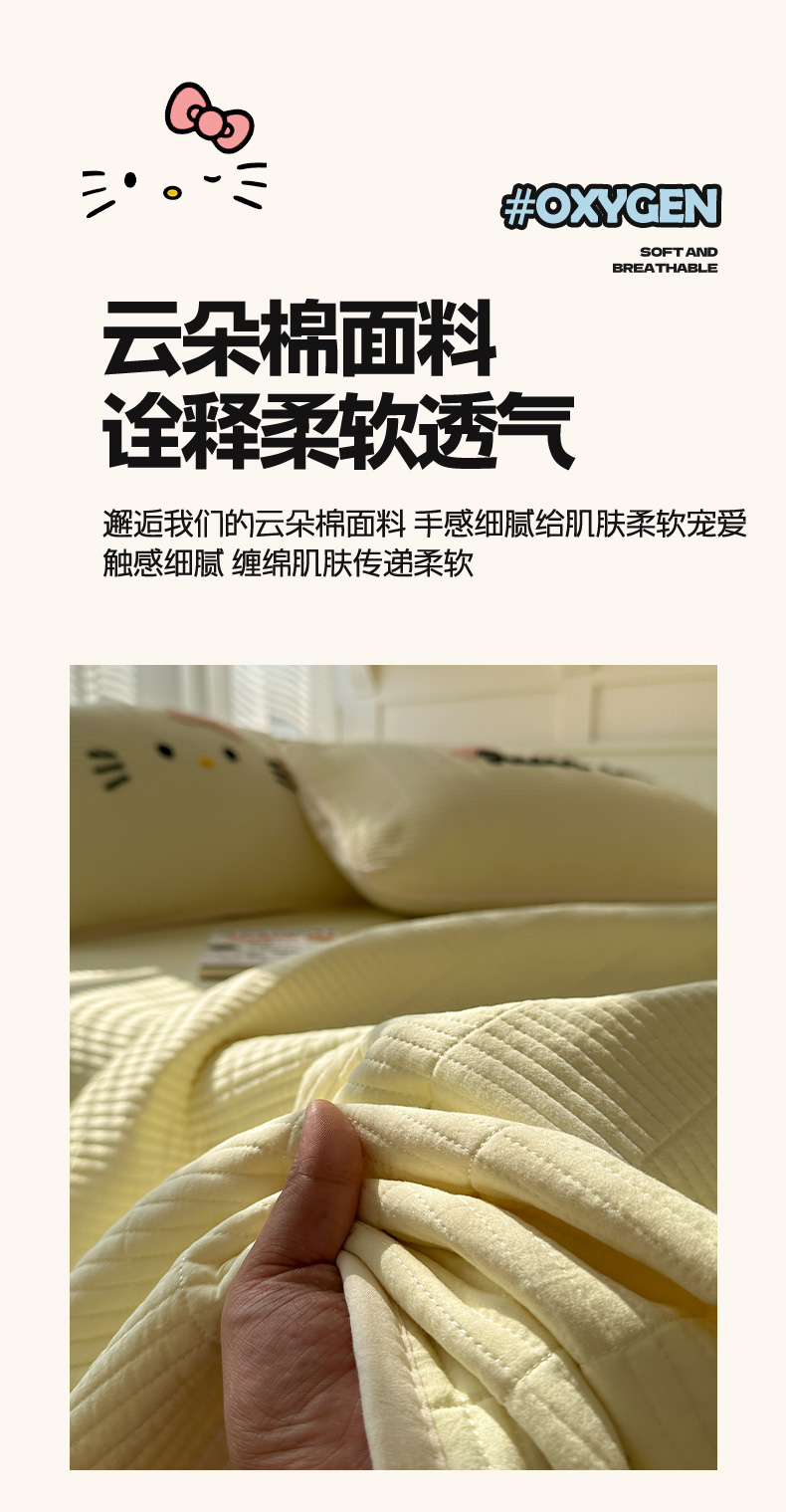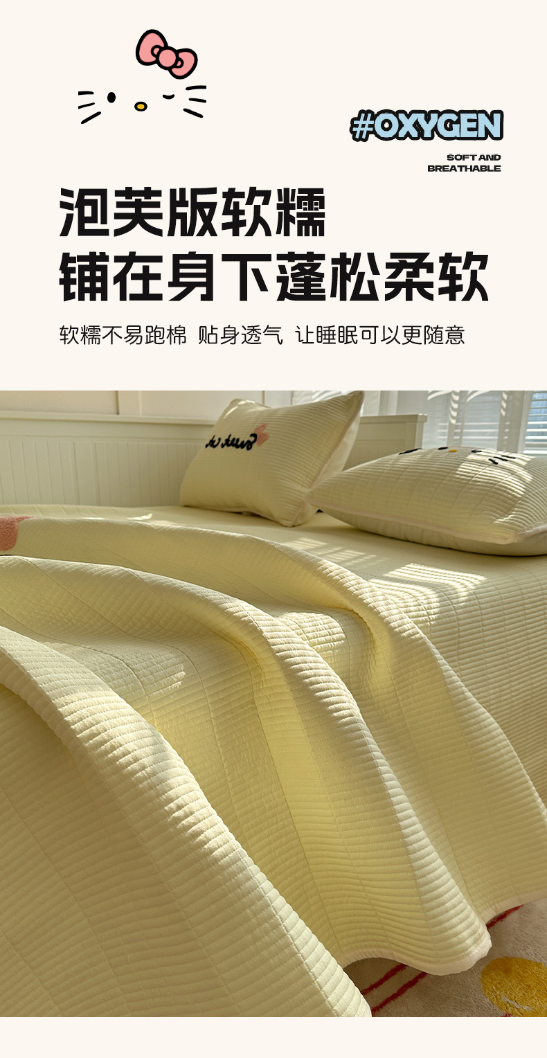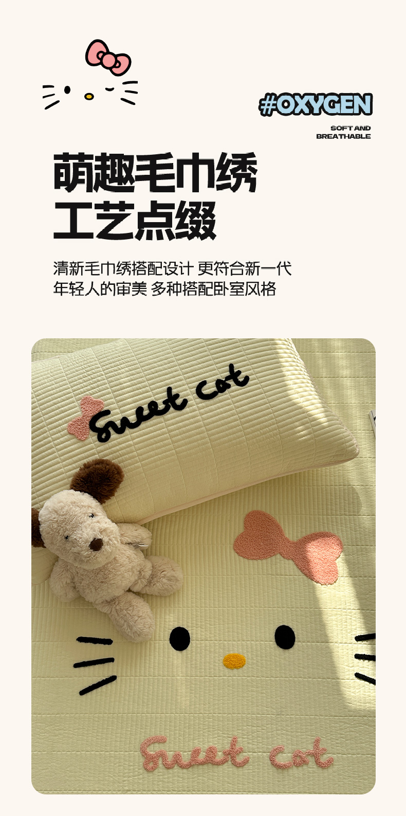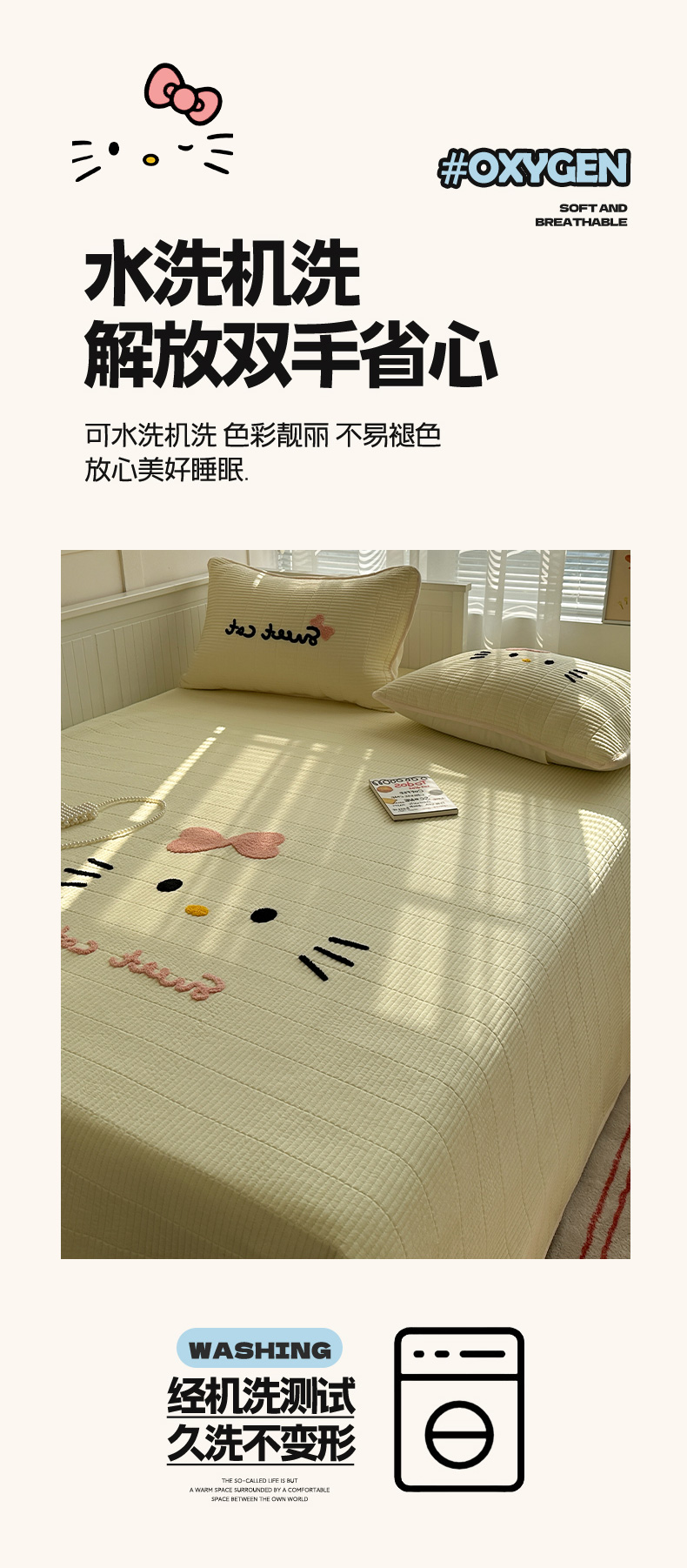 繁花家居 2025新款云朵棉软到心坎可爱毛巾绣床盖,不跑床的加厚床单 喵喵-奶黄