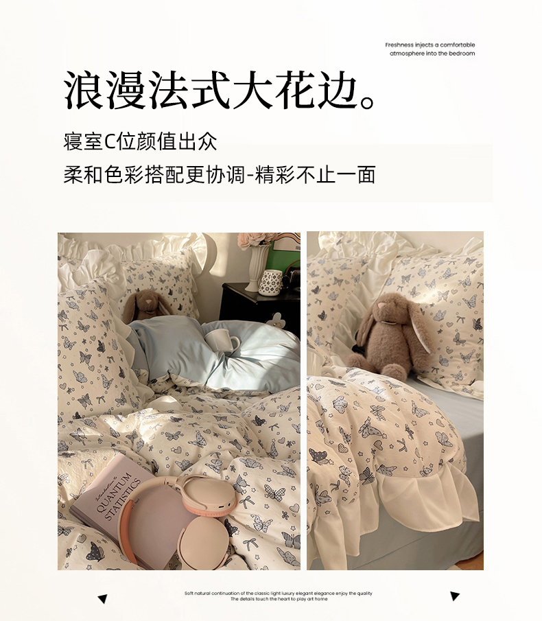 当前位置: 91家纺网 > 商品网购 > 床品套件 > 四件套 > 水洗棉四件套 > 耀悦家纺 2026新款古法仿棉四件套水洗棉法式工艺花边套件被套床单吊边圆角荷叶边床单 云朵星语