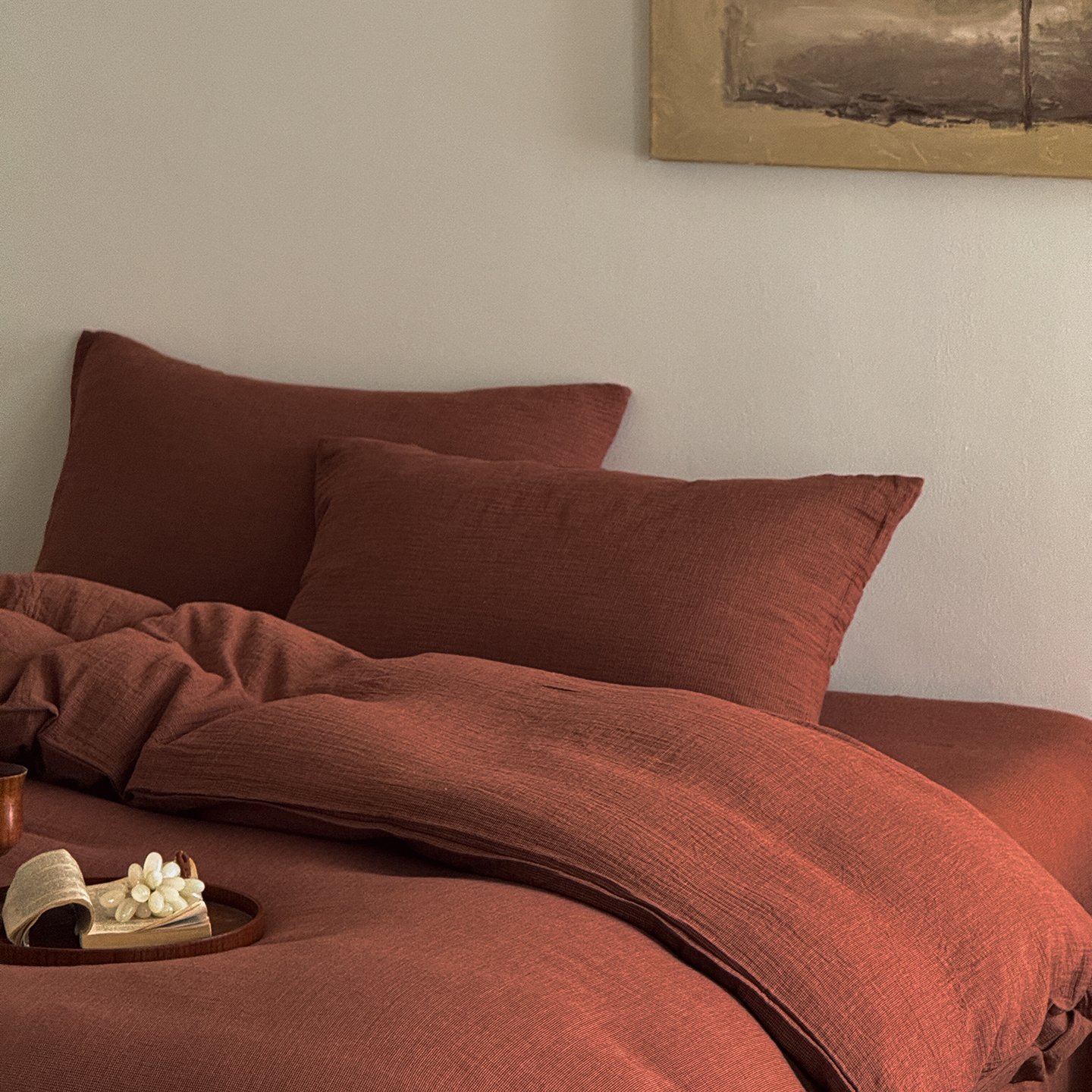 (总)爱丽丝 2025新款云感色织全棉双层纱四件套,粉色,红色,咖色,绿色,米色