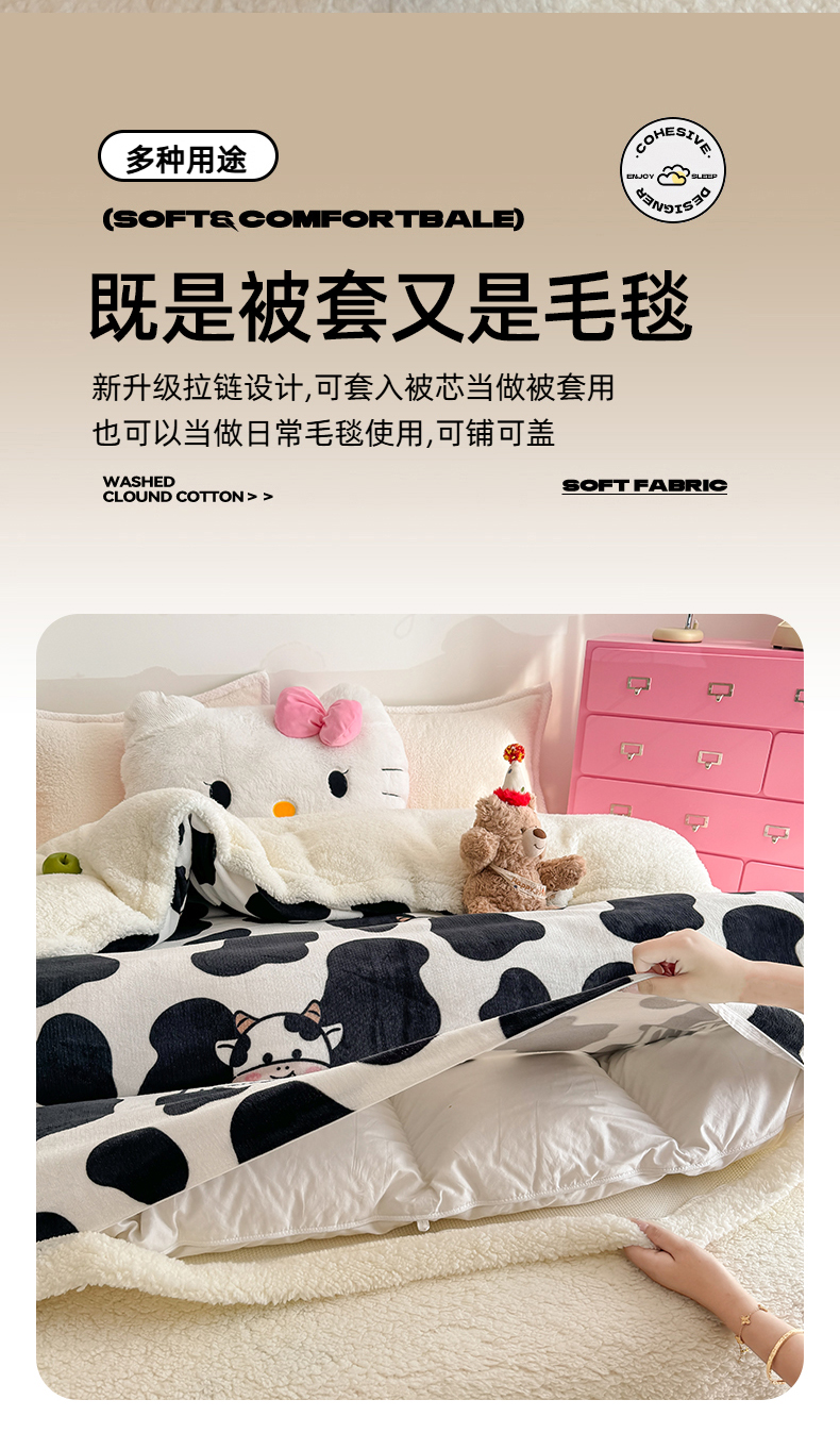 商品名称:温眠家纺 2025新款ins羊羔绒牛奶绒可被套休闲毯单被套-被套图 羊-奶牛