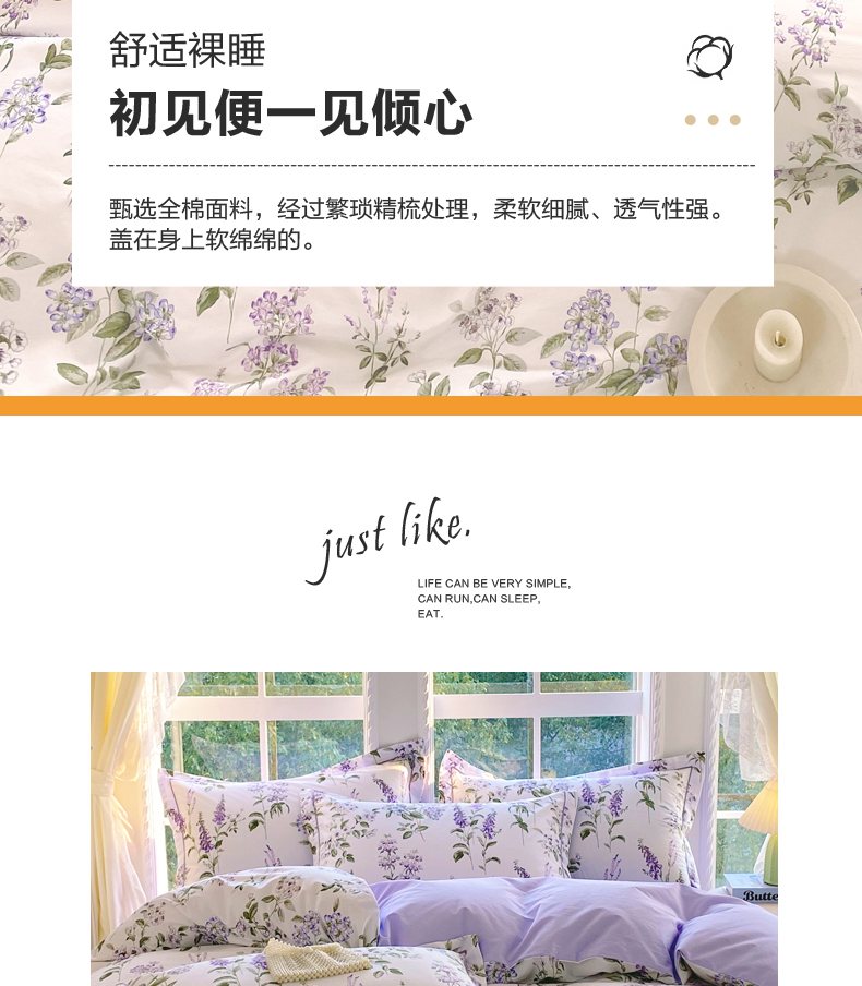 当前位置: 91家纺网 > 商品网购 > 床品套件 > 四件套 > 全棉普通四件套 > 星期三家纺 2026款1月新款铂金全棉13372四件套 漫花