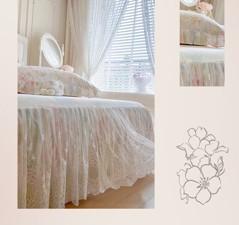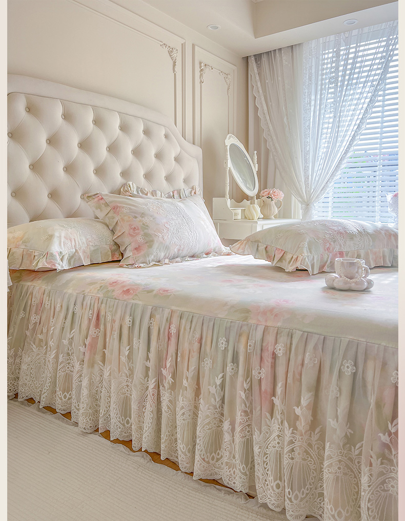 (总)恋尚 2025新款印花竹节纱床笠款床裙四件套(四件套控价220起),春野,花浅,花悦,莫婷,秋茉,甜梦