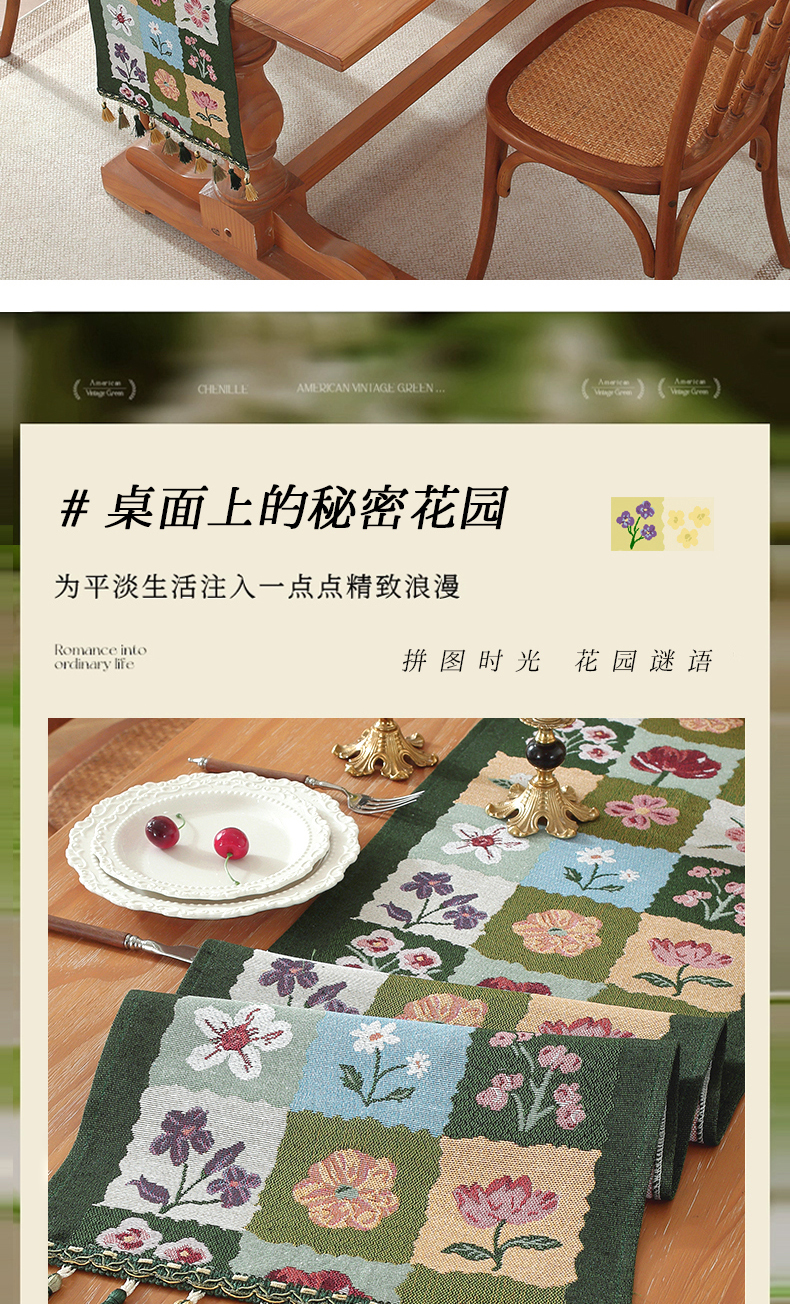 当前位置: 91家纺网 > 商品网购 > 居家布艺 > 餐桌布 > 南通大梧纺织 2026新款美式风情花朵桌旗 花朵咖