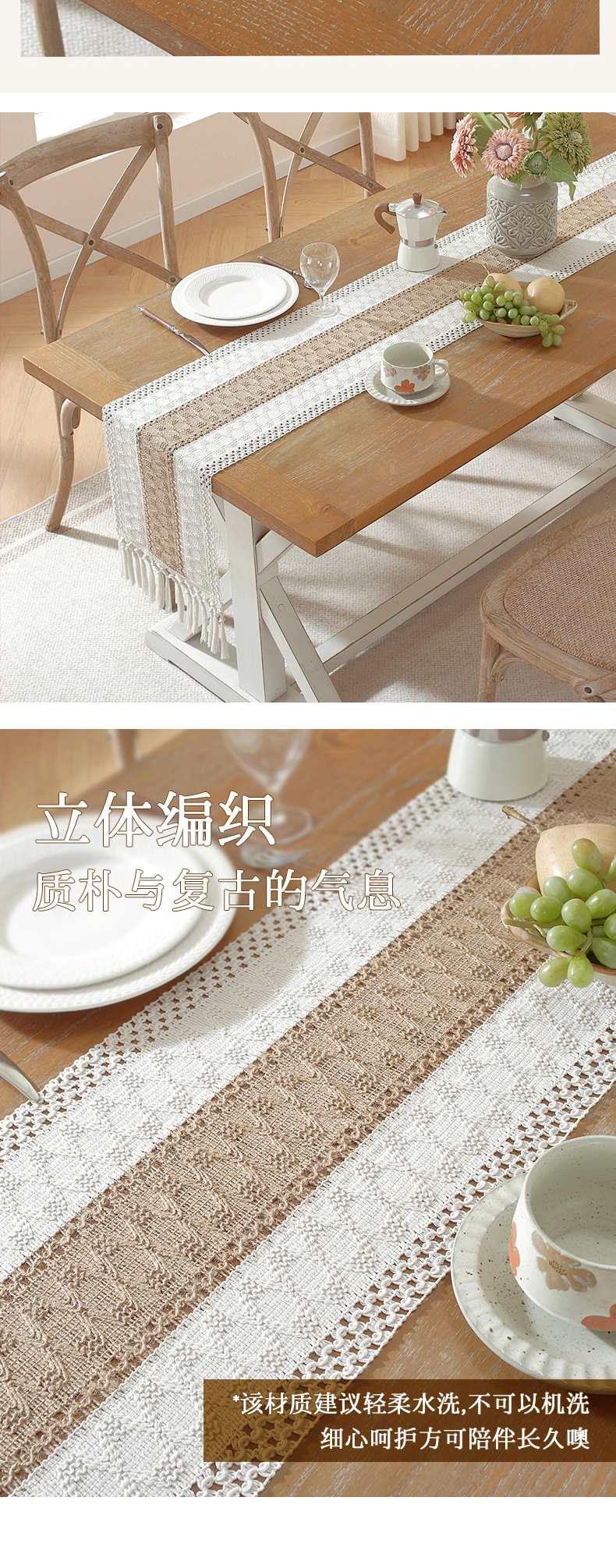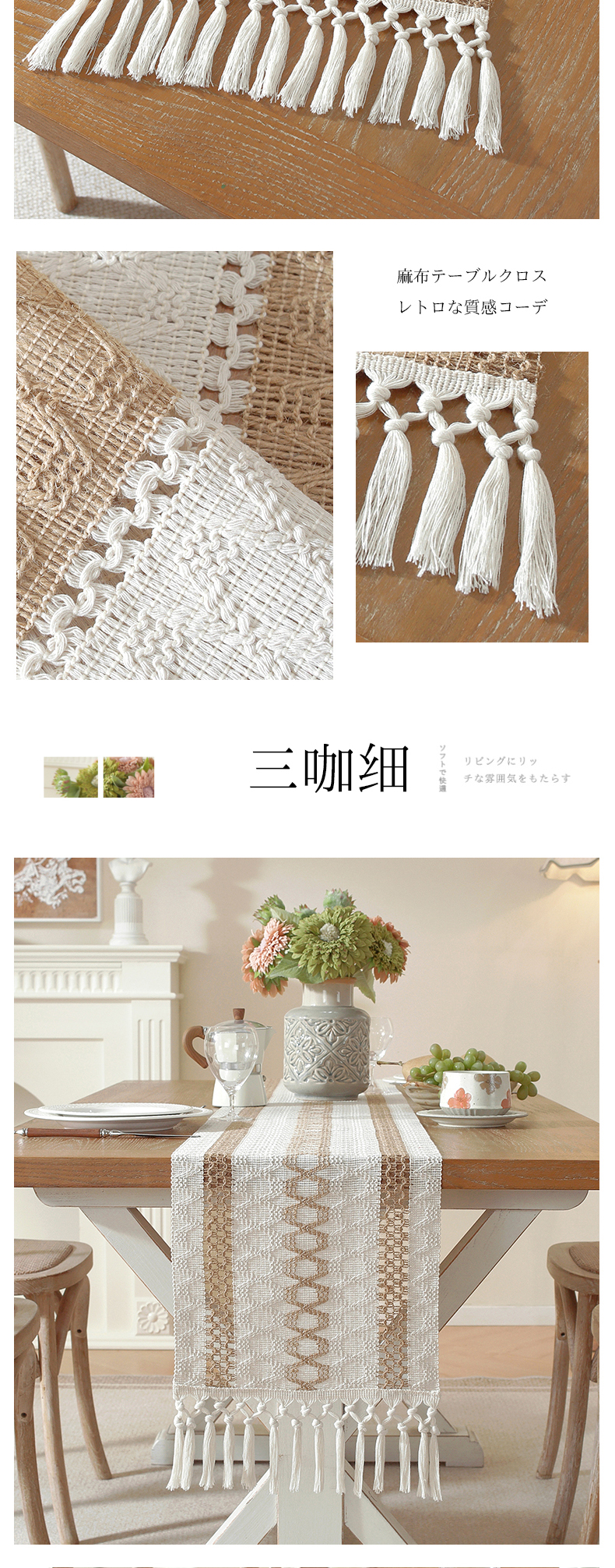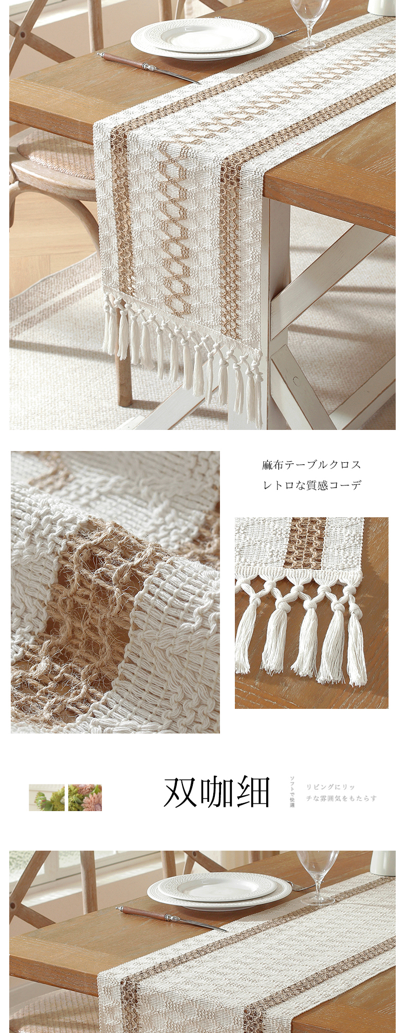 当前位置: 91家纺网 > 商品网购 > 居家布艺 > 餐桌布 > 南通大梧纺织 2026新款宅寂风复古麻长须桌旗 双咖宽 长结须