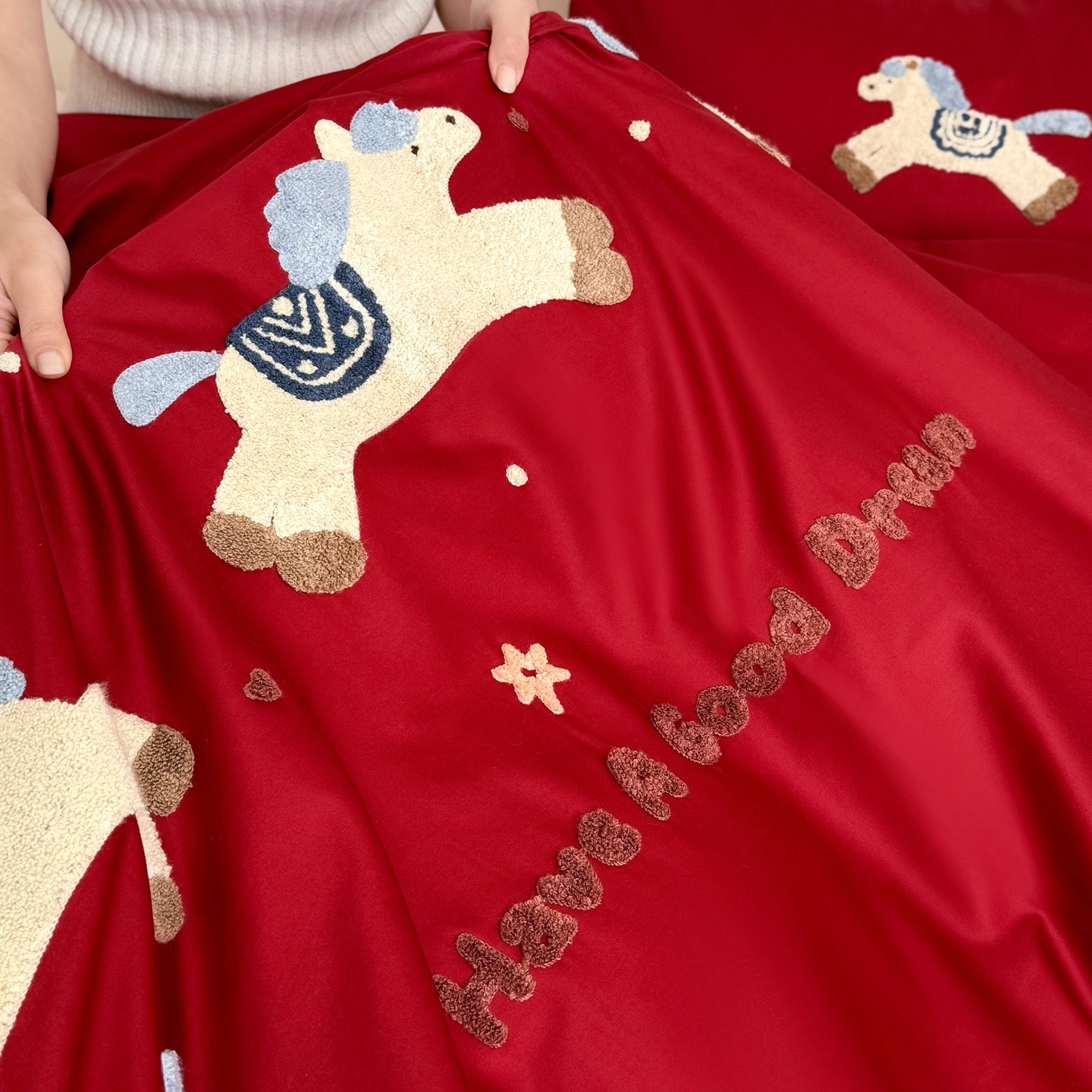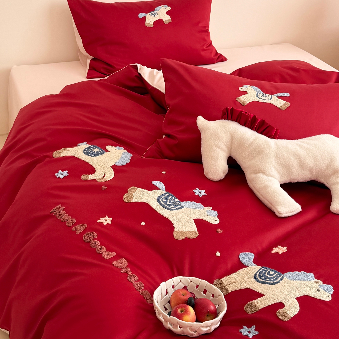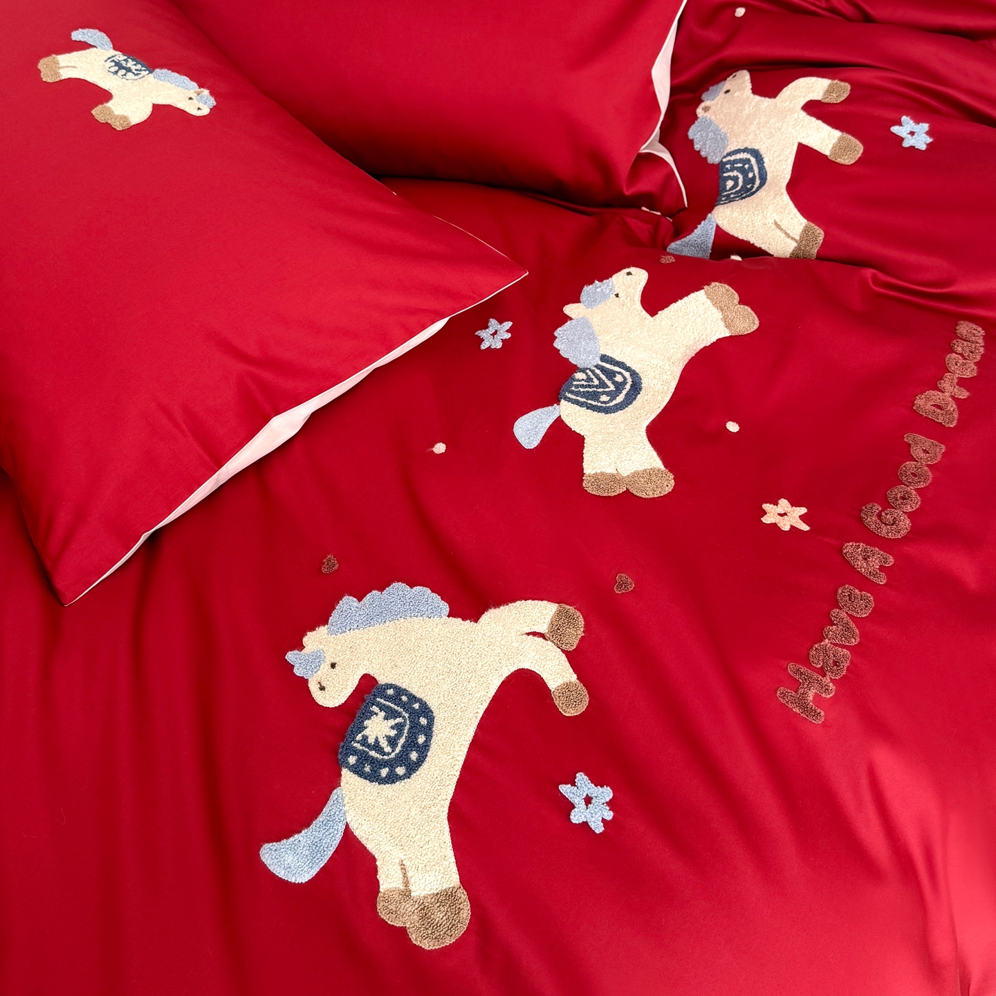 当前位置: 91家纺网 > 商品网购 > 床品套件 > 四件套 > 长绒棉四件套 > (总)鹿班家居 2026春夏新款100S长绒棉纯棉毛巾绣系列四件套-幸运小马(标准会员-20元)
