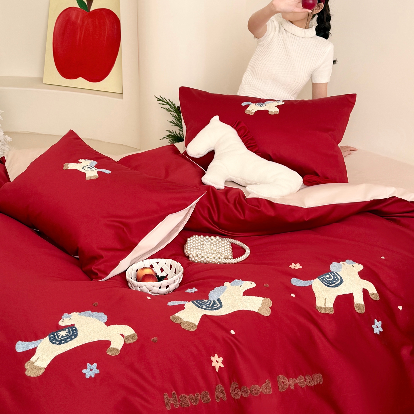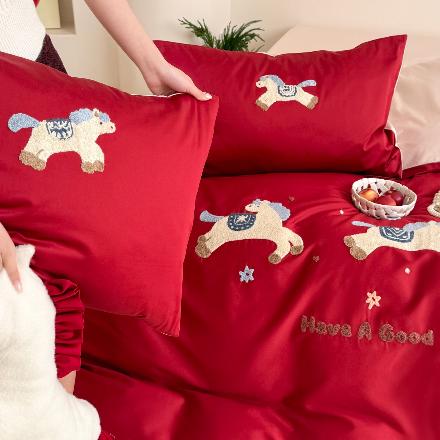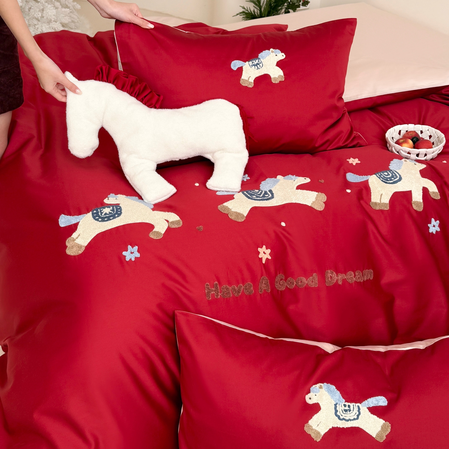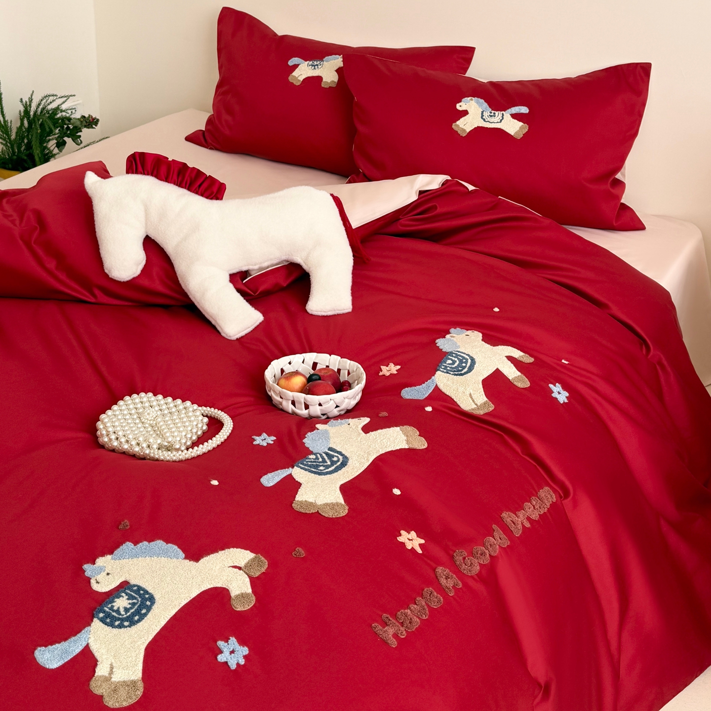 当前位置: 91家纺网 > 商品网购 > 床品套件 > 四件套 > 长绒棉四件套 > (总)鹿班家居 2026春夏新款100S长绒棉纯棉毛巾绣系列四件套-幸运小马(标准会员-20元)