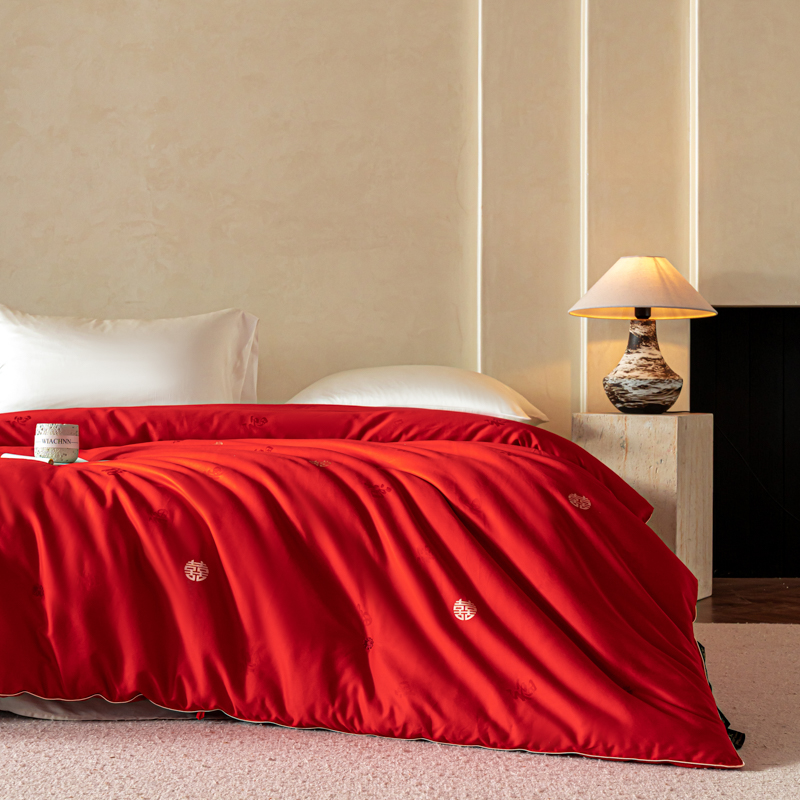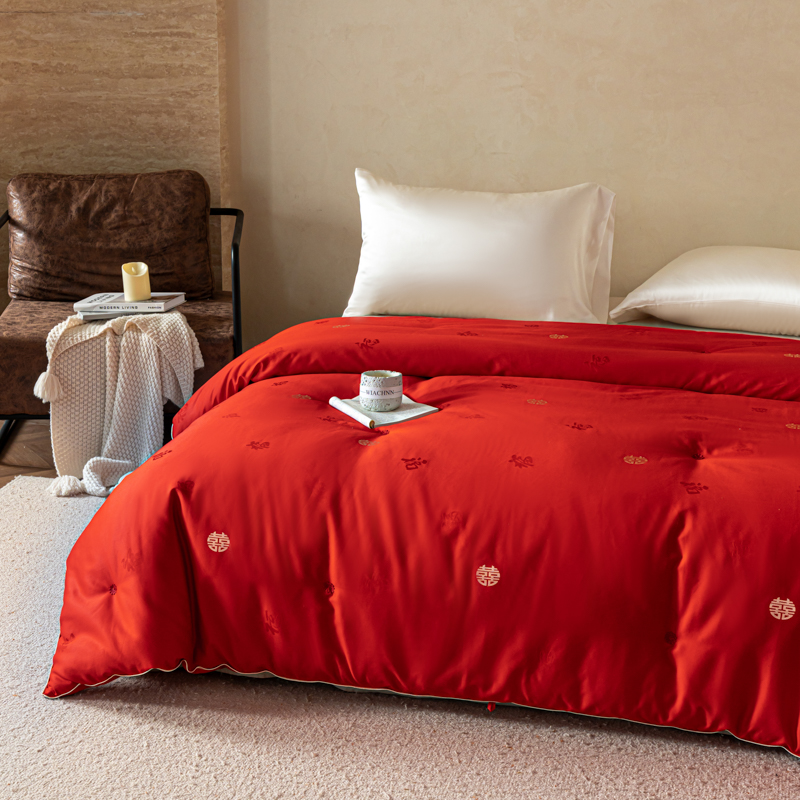 茧月家纺 新款亲肤舒适蚕丝被子被芯-喜结连理 红色,红色