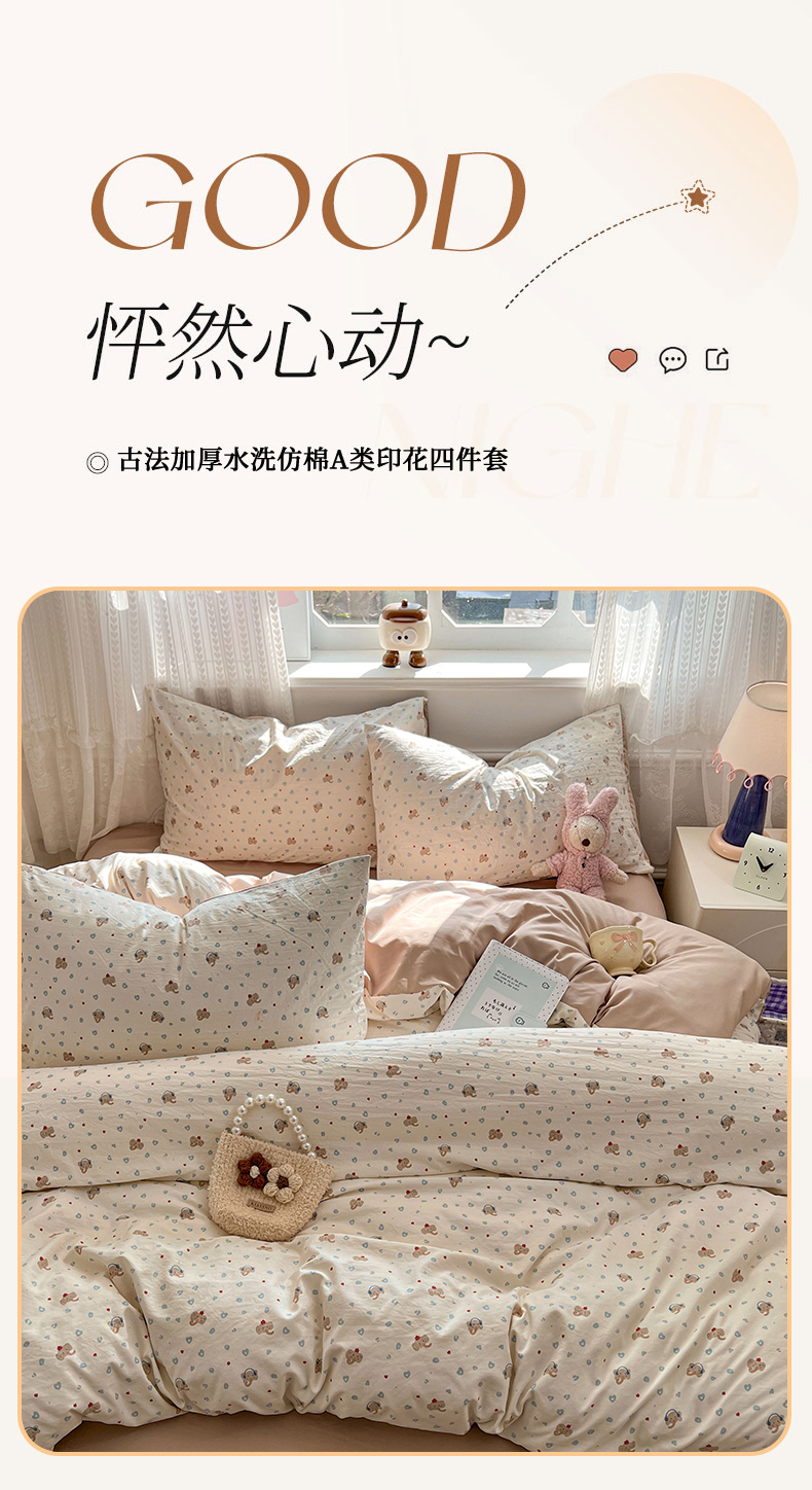 当前位置: 91家纺网 > 商品网购 > 床品套件 > 四件套 > 水洗棉四件套 > 优佳优品 【提供买家秀】2026新款加厚水洗仿棉A类印花四件套 蓝心象语