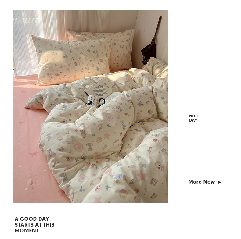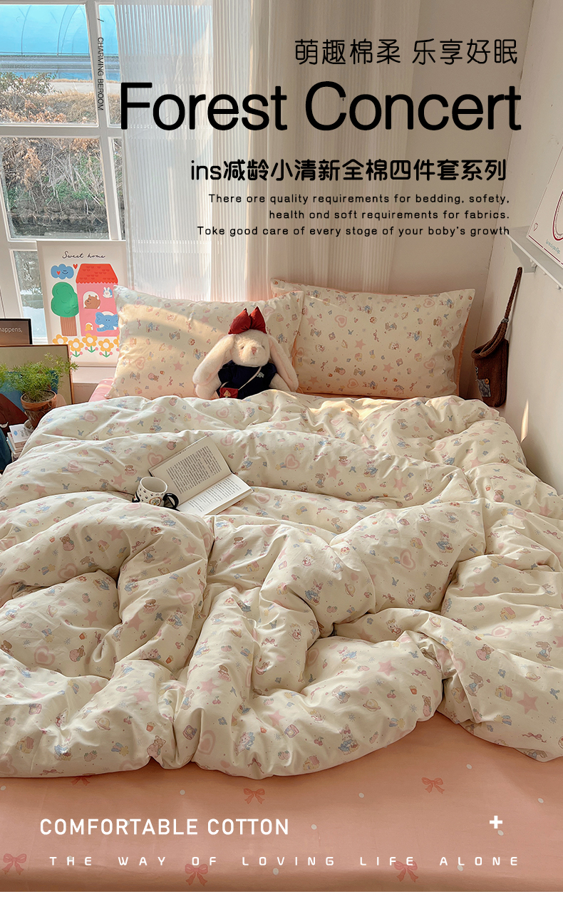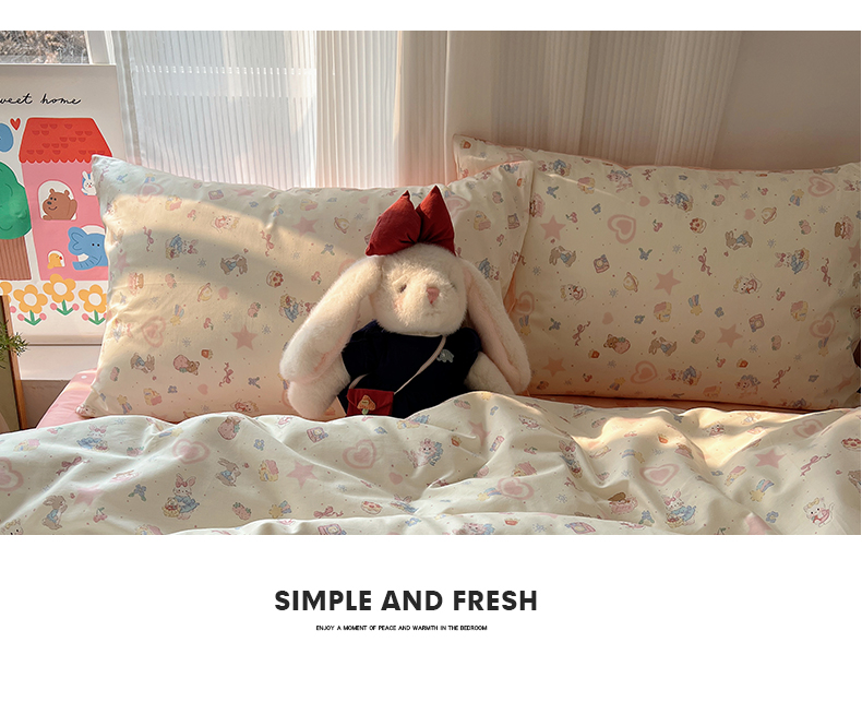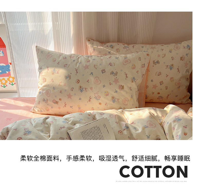 当前位置: 91家纺网 > 商品网购 > 床品套件 > 四件套 > 全棉普通四件套 > XIWEN-希文家纺 2026春夏新款40支全棉13372卡通四件套 甜蜜家园