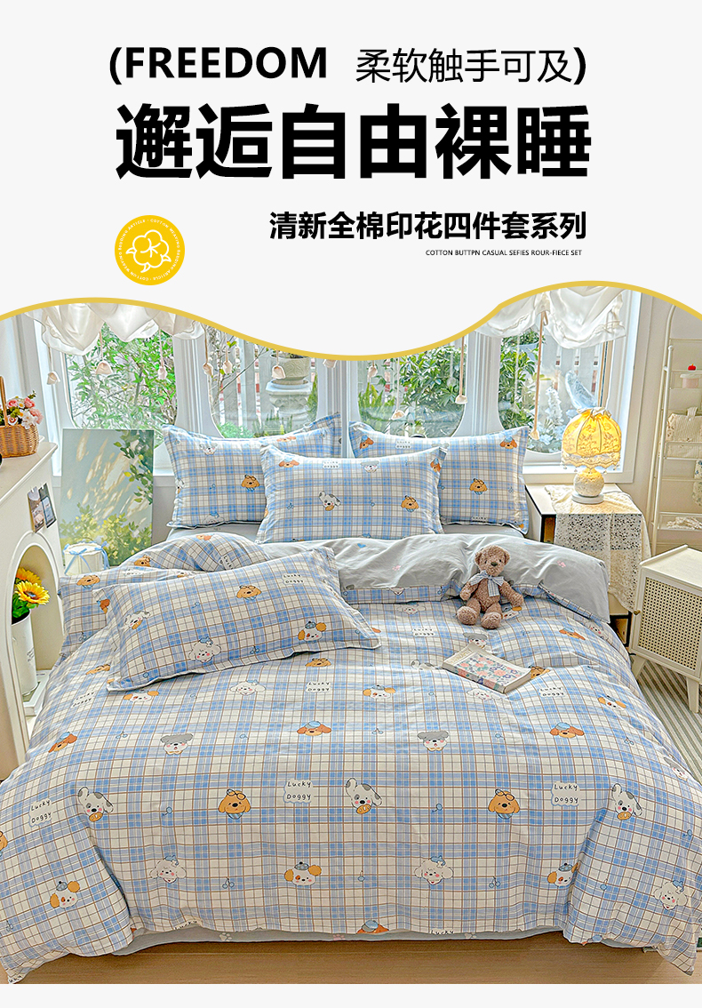 当前位置: 91家纺网 > 商品网购 > 床品套件 > 四件套 > 全棉普通四件套 > 恩泽家纺 2026春夏新款全棉纯棉12868印花四件套(提供买家秀,预留缩水率) 甜心汪·蓝