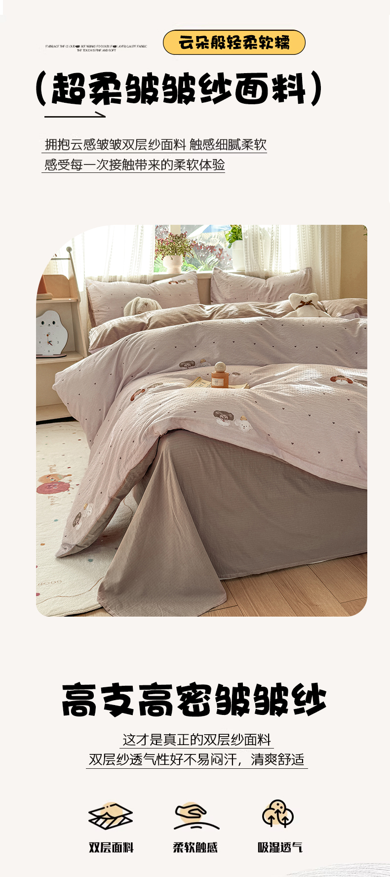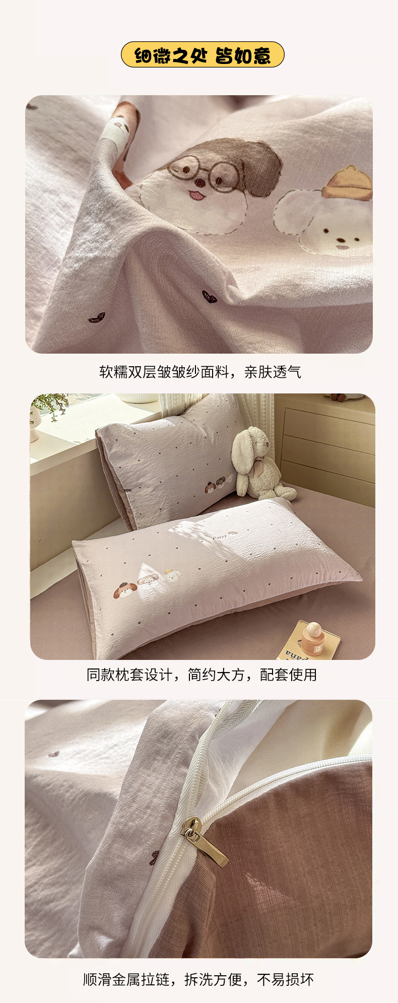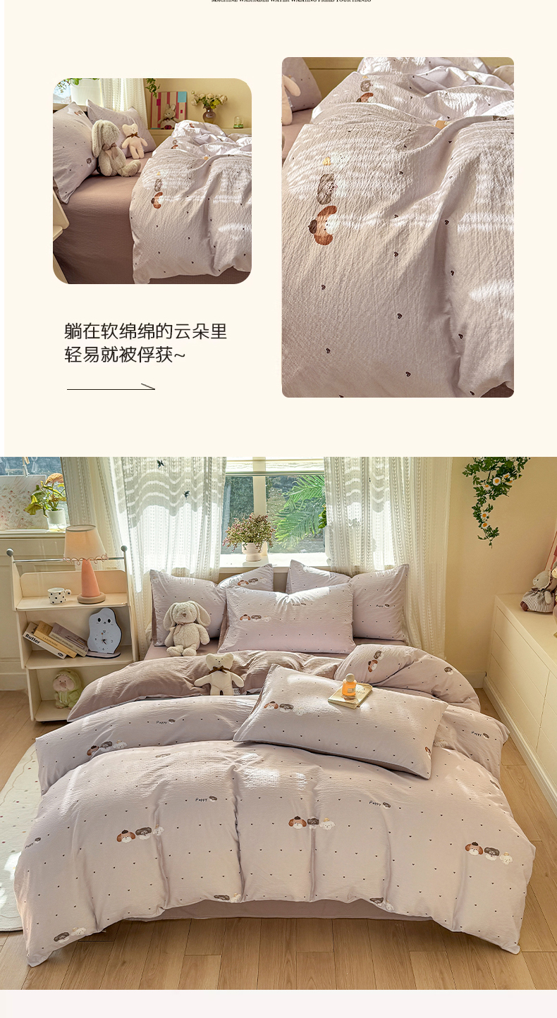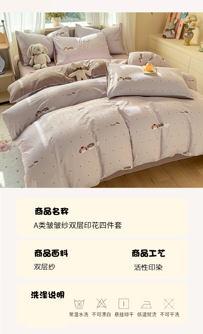 当前位置: 91家纺网 > 商品网购 > 床品套件 > 四件套 > 双层纱四件套 > 丽美人家纺 2026新款A类皱皱纱双层印花四件套 爱心小狗