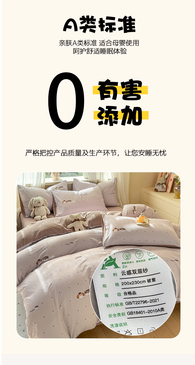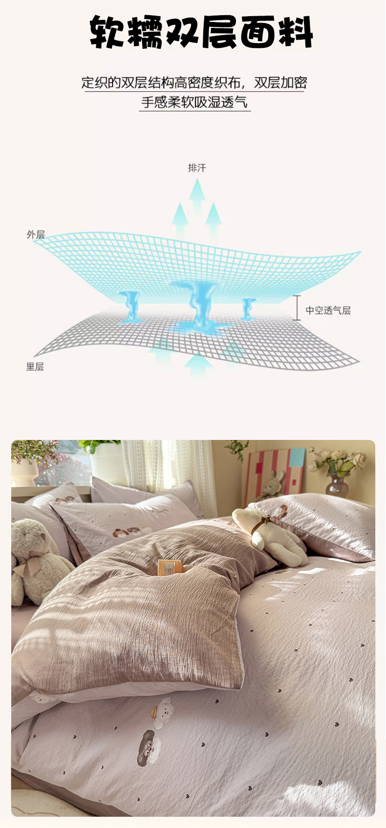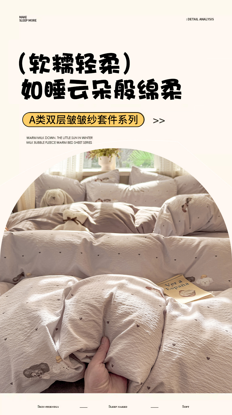 当前位置: 91家纺网 > 商品网购 > 床品套件 > 四件套 > 双层纱四件套 > 丽美人家纺 2026新款A类皱皱纱双层印花四件套 爱心小狗
