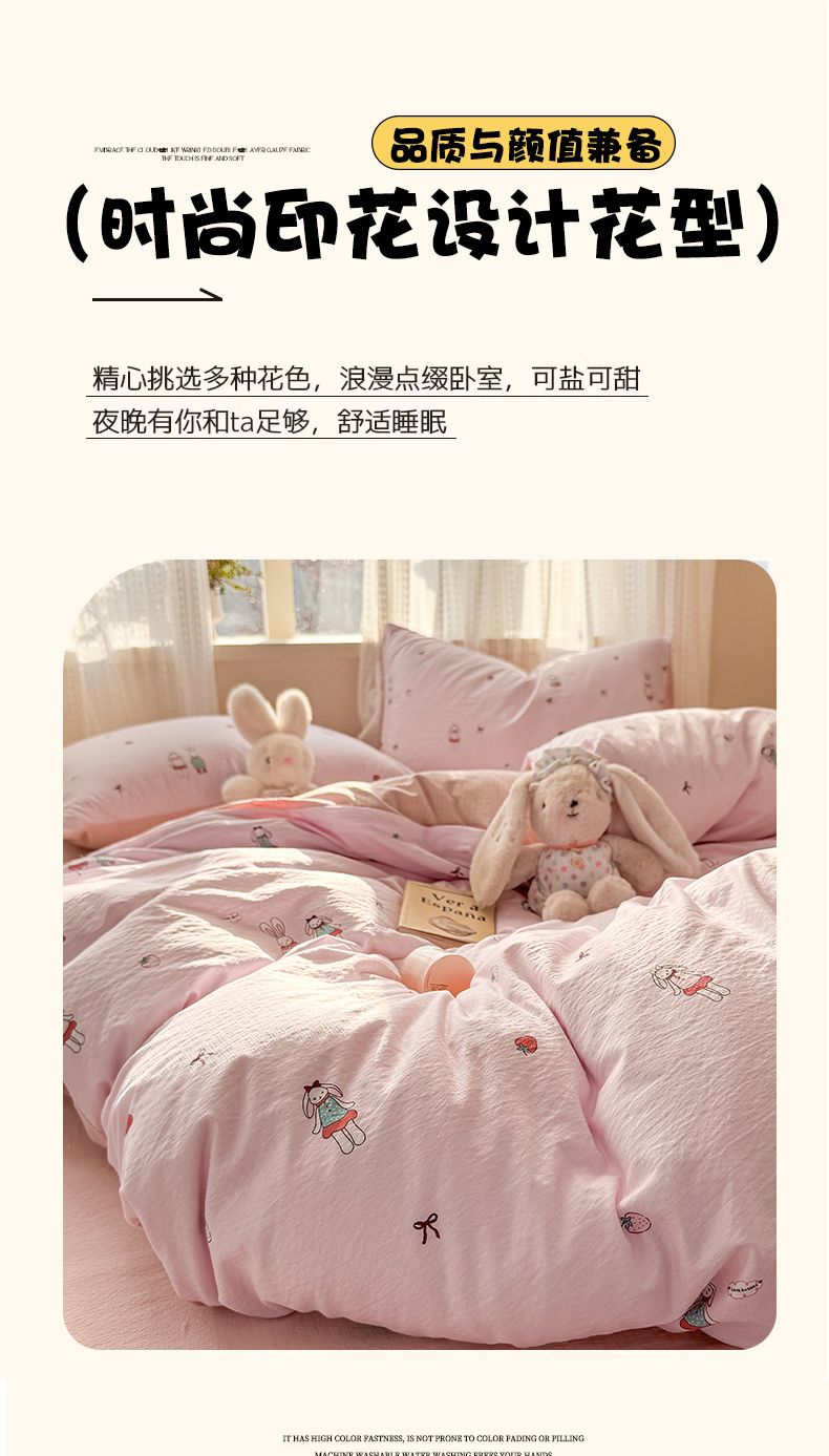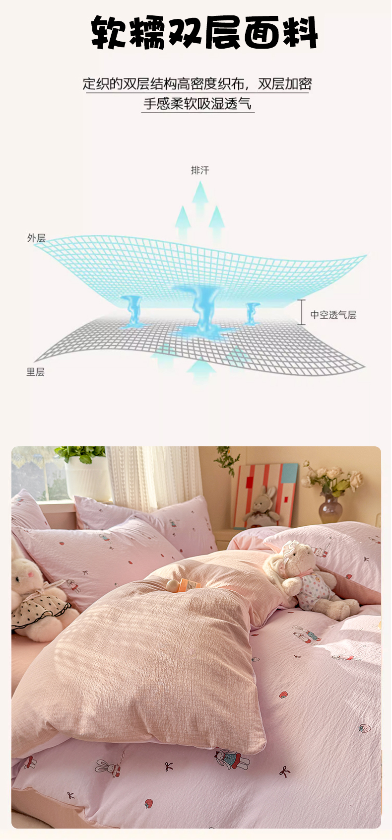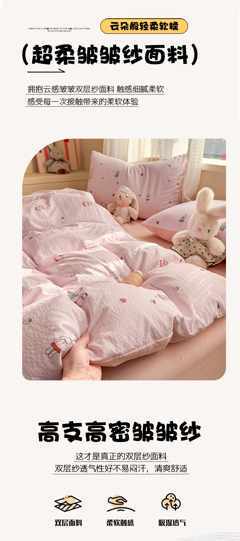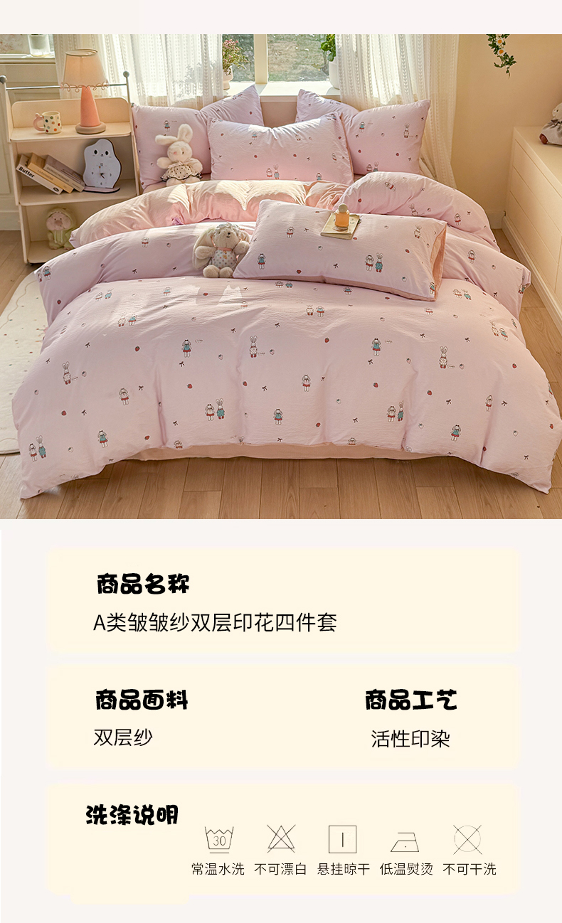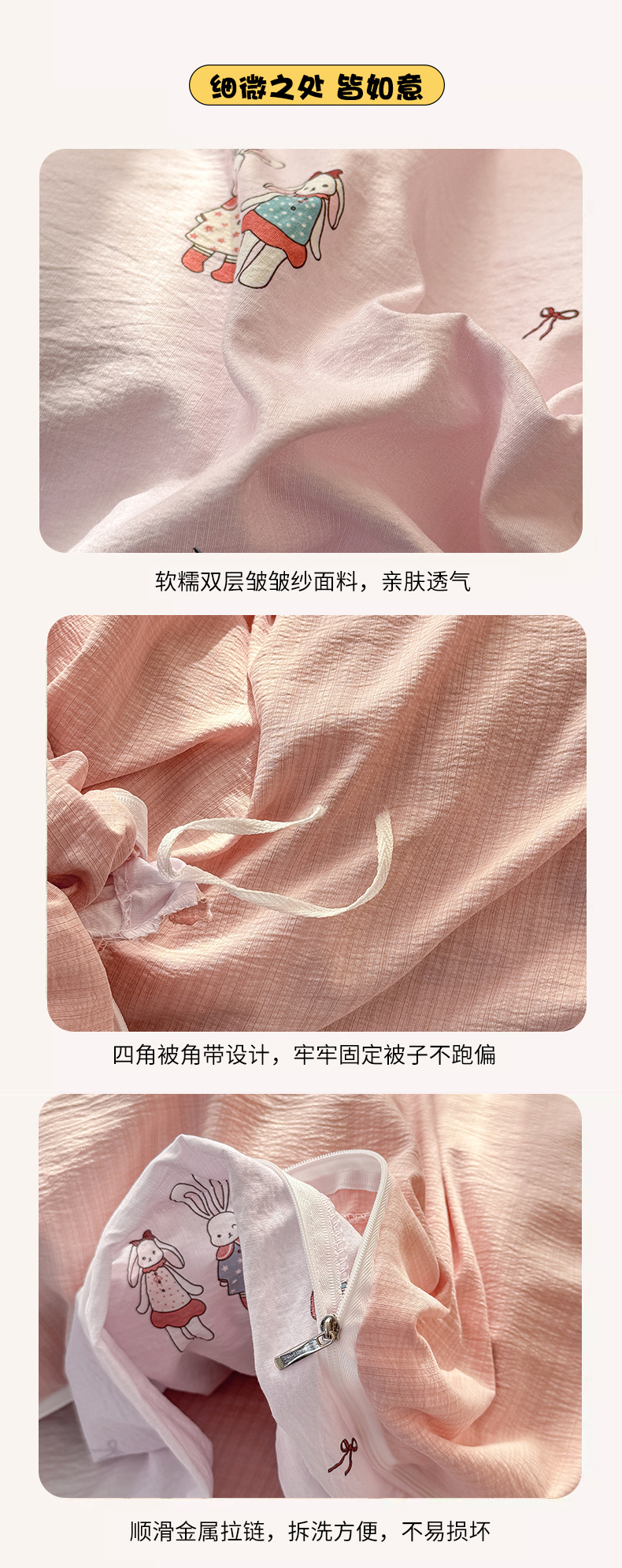 当前位置: 91家纺网 > 商品网购 > 床品套件 > 四件套 > 双层纱四件套 > 丽美人家纺 2026新款A类皱皱纱双层印花四件套 兔小姐