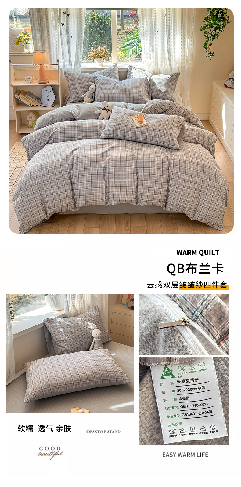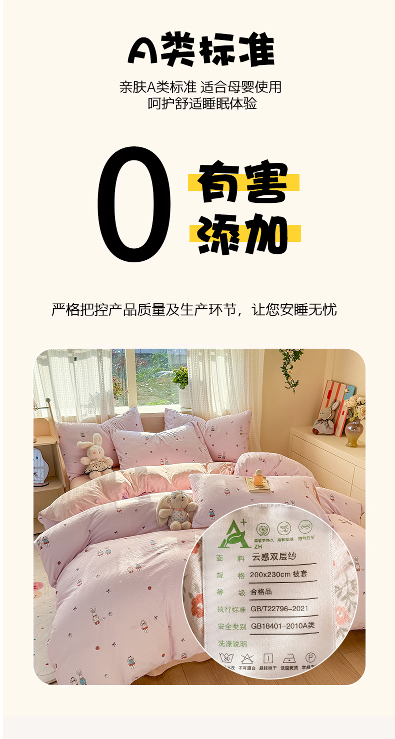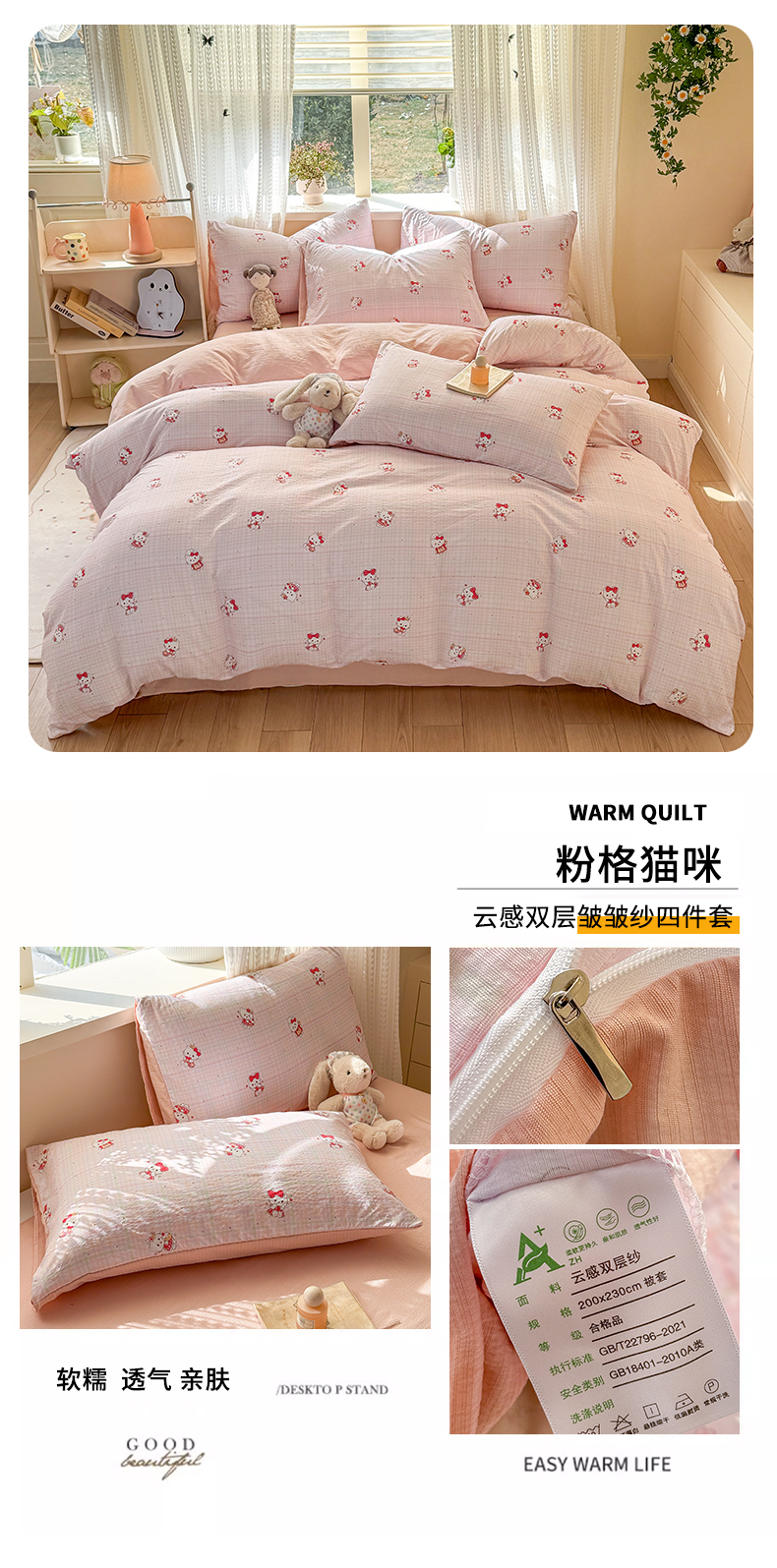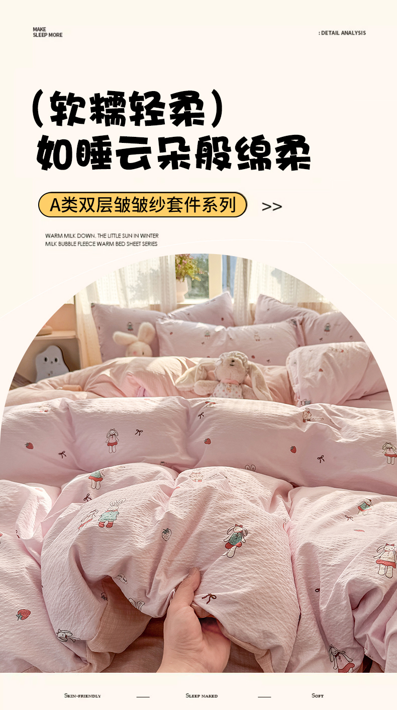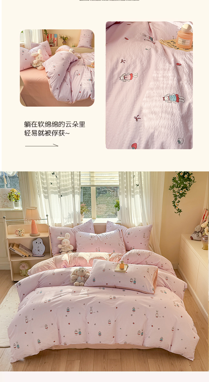 当前位置: 91家纺网 > 商品网购 > 床品套件 > 四件套 > 双层纱四件套 > 丽美人家纺 2026新款A类皱皱纱双层印花四件套 兔小姐