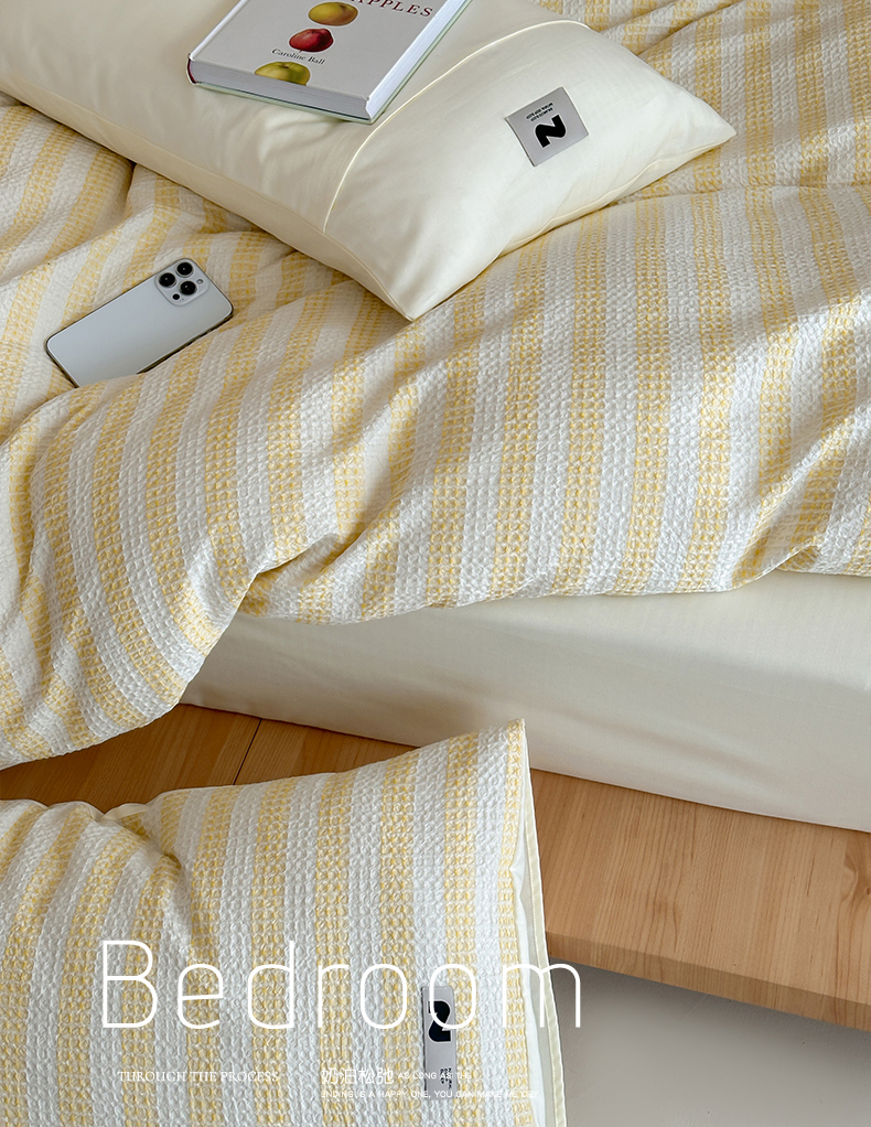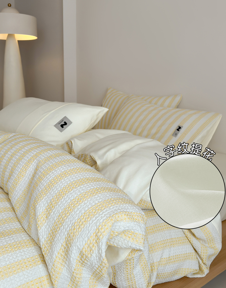 当前位置: 91家纺网 > 商品网购 > 床品套件 > 四件套 > 全棉普通四件套 > 静家居-简约原创家纺 2026新款ins小清晰简约全棉纯棉华夫格提花四件套-芝士系列 芝士-柠檬黄