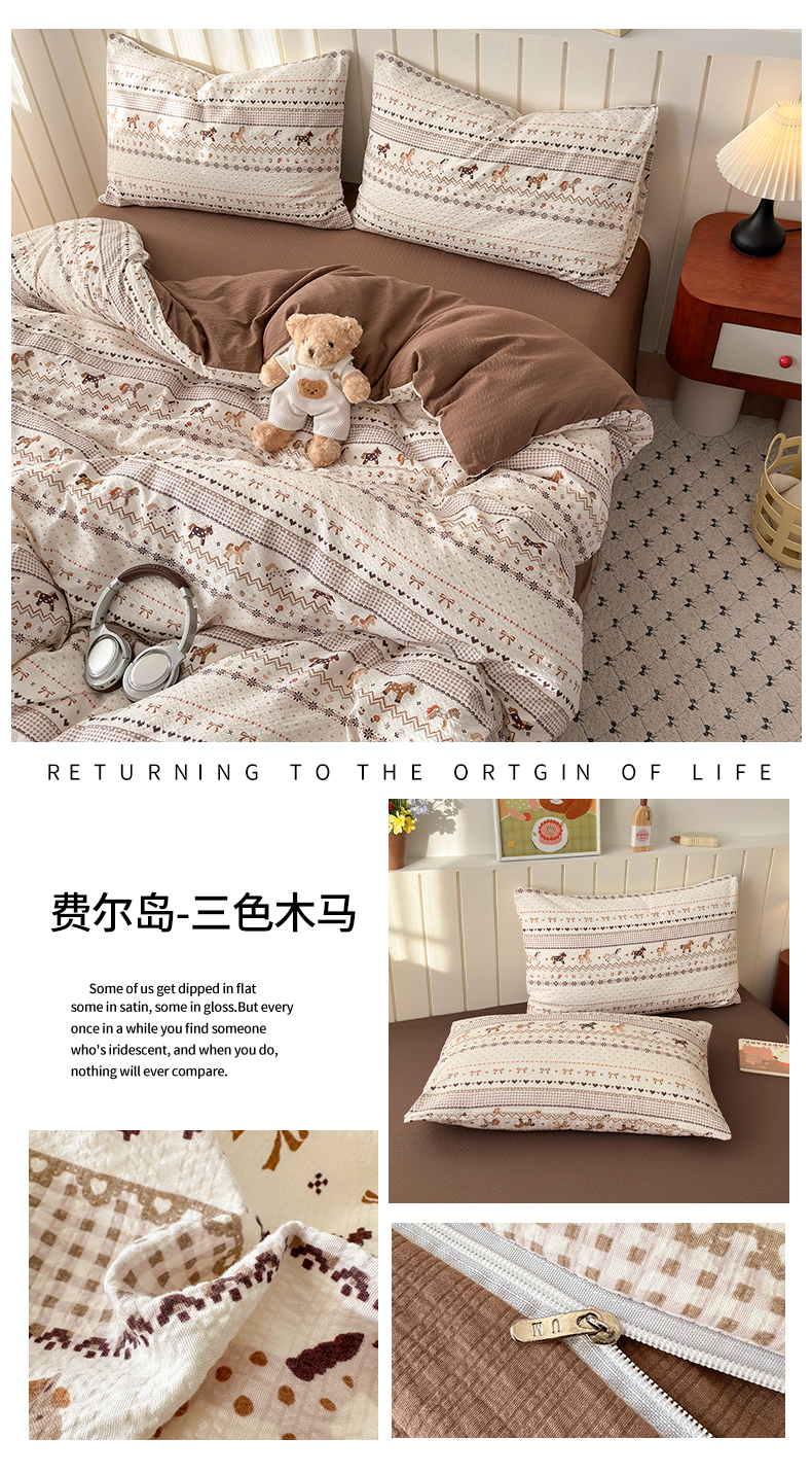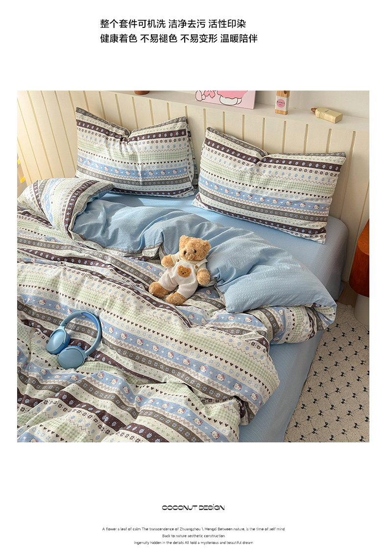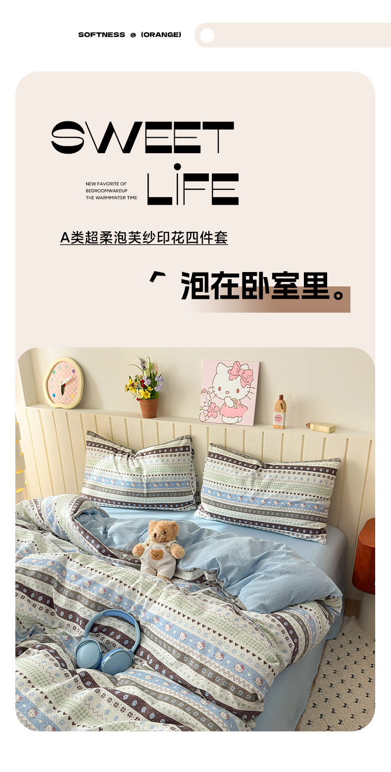 当前位置: 91家纺网 > 商品网购 > 床品套件 > 四件套 > 化纤普通四件套 > 奈颜 2026新款A类泡芙纱印花四件套学生宿舍三件套-费尔岛系列 费尔岛-奶猫草莓