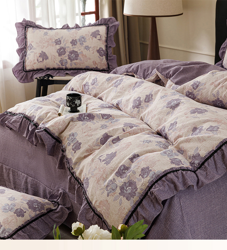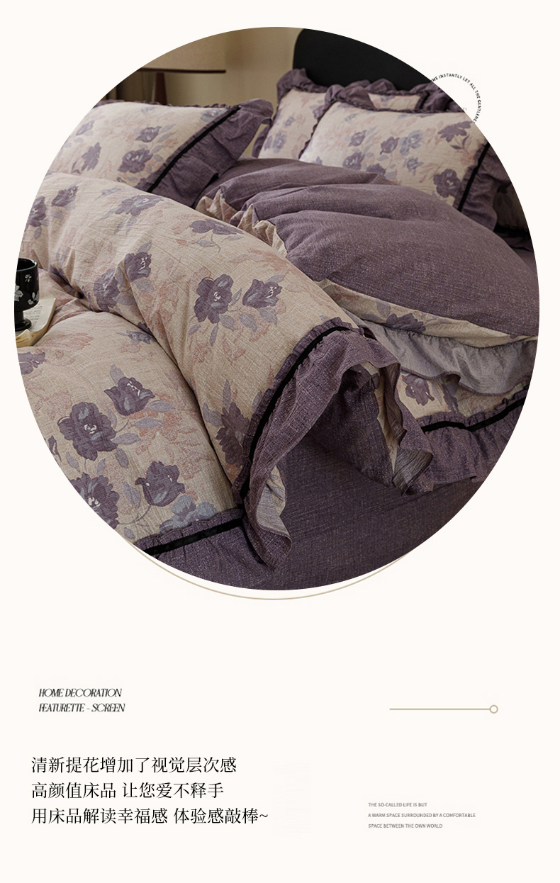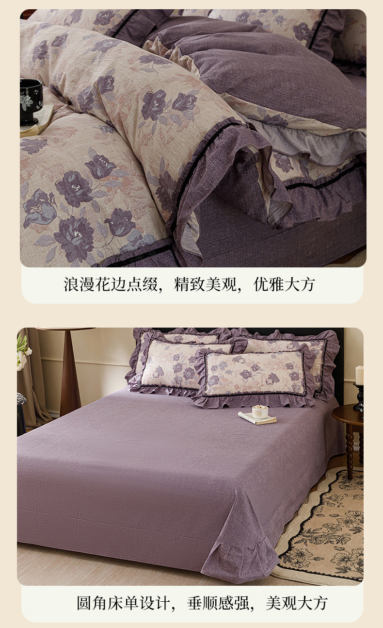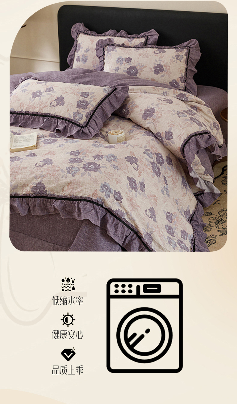 商品名称:悦然毛巾被 2026新款原麻水洗提花四件套 紫莓花田