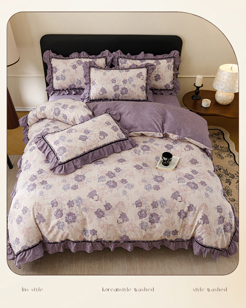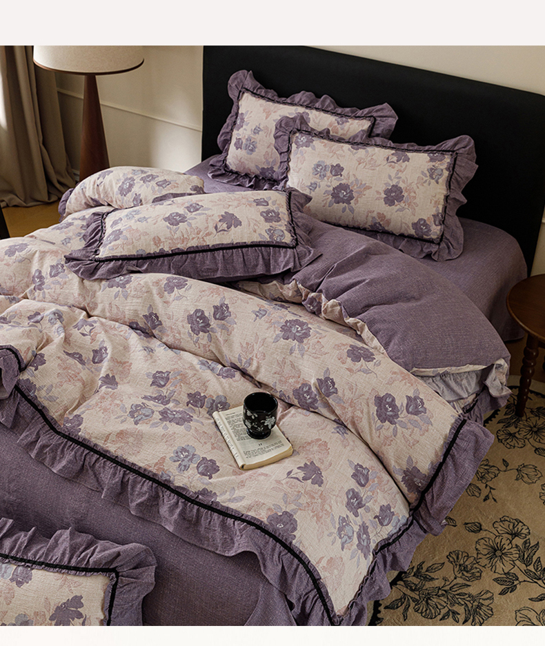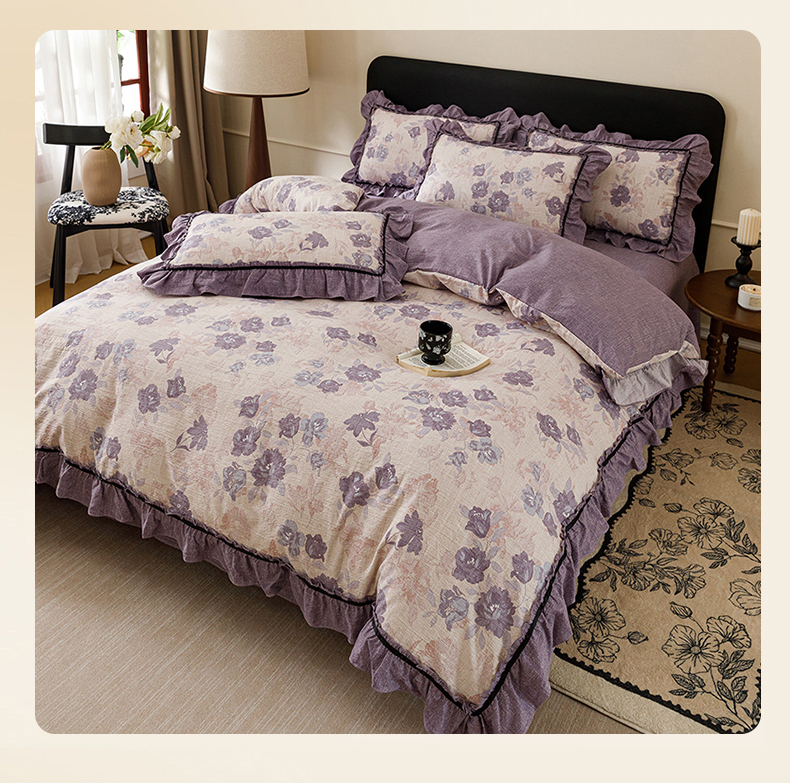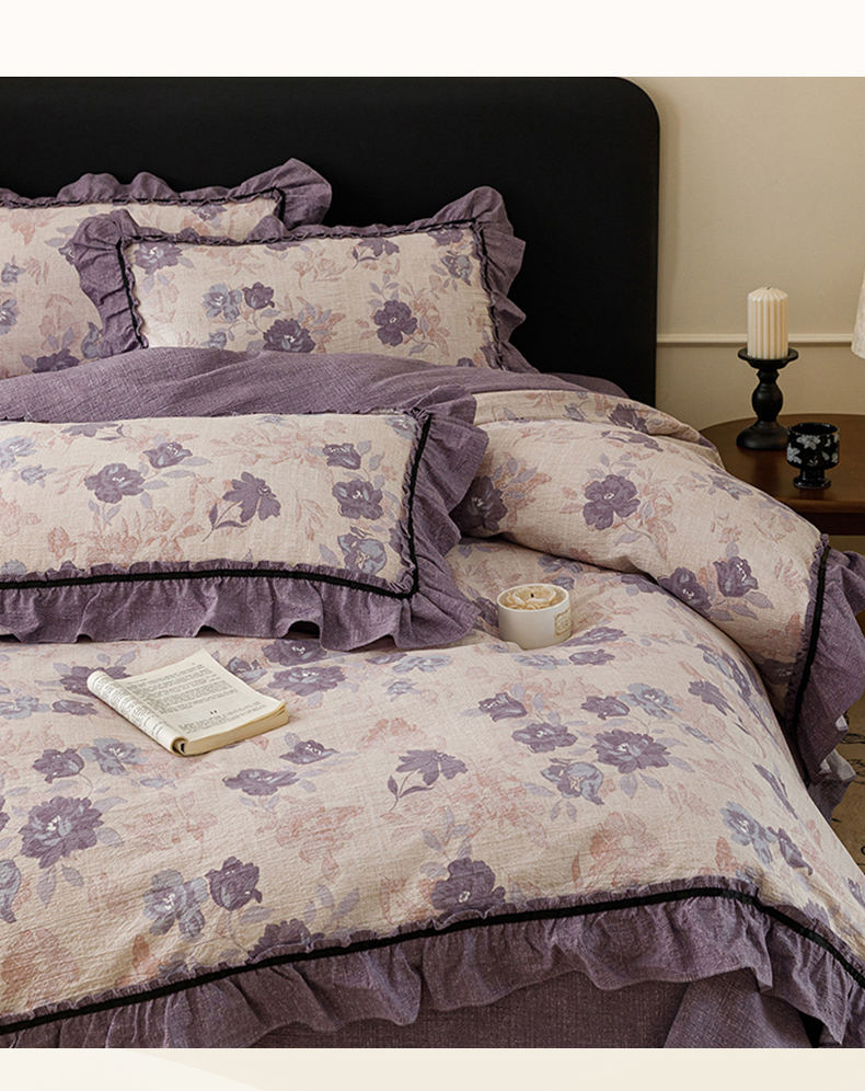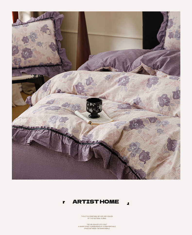 商品名称:悦然毛巾被 2026新款原麻水洗提花四件套 紫莓花田