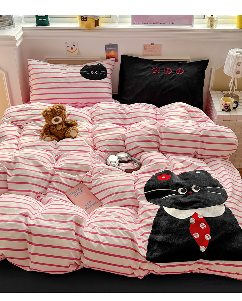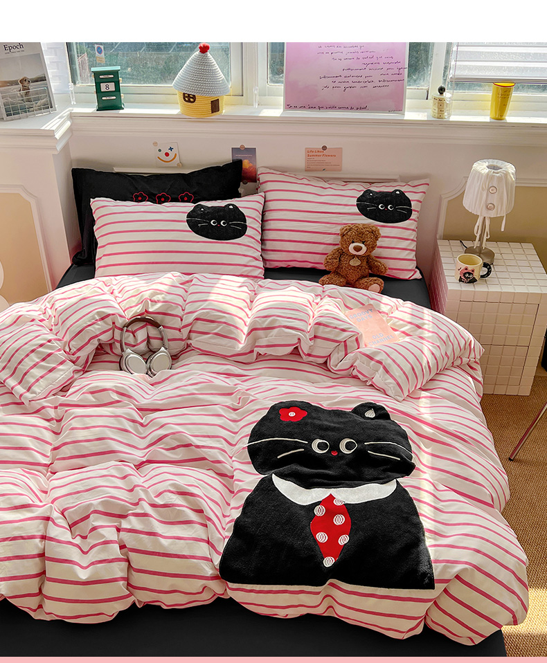 (总)繁花家居 2026简单款水洗棉四件套学生床三件套,小软猫,曲线蝴蝶结,芭乐可丽卷,粉格-小花熊,粉格小豹纹,咖腊肠狗,咖心小熊,红格撞青,幻想乐园