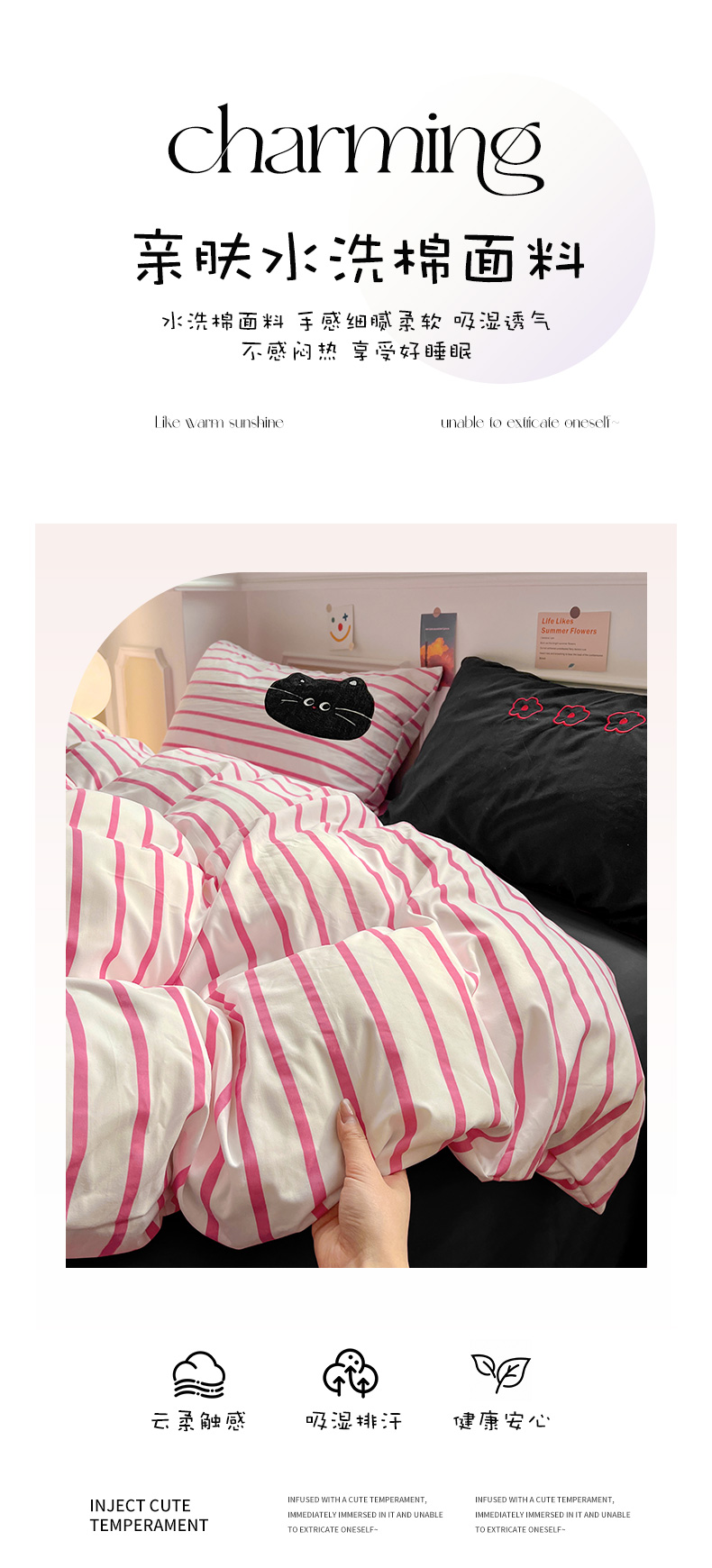 (总)繁花家居 2025新款高克重水洗棉云朵棉条纹撞色系列四件套,可可白+咖条,天空蓝+蓝条,柠檬绿条,奶茶黑条,蒂芙尼蓝,海盐蓝格,蓝白条调色,玫红黑条,雾霾灰,月光灰