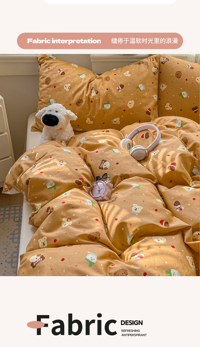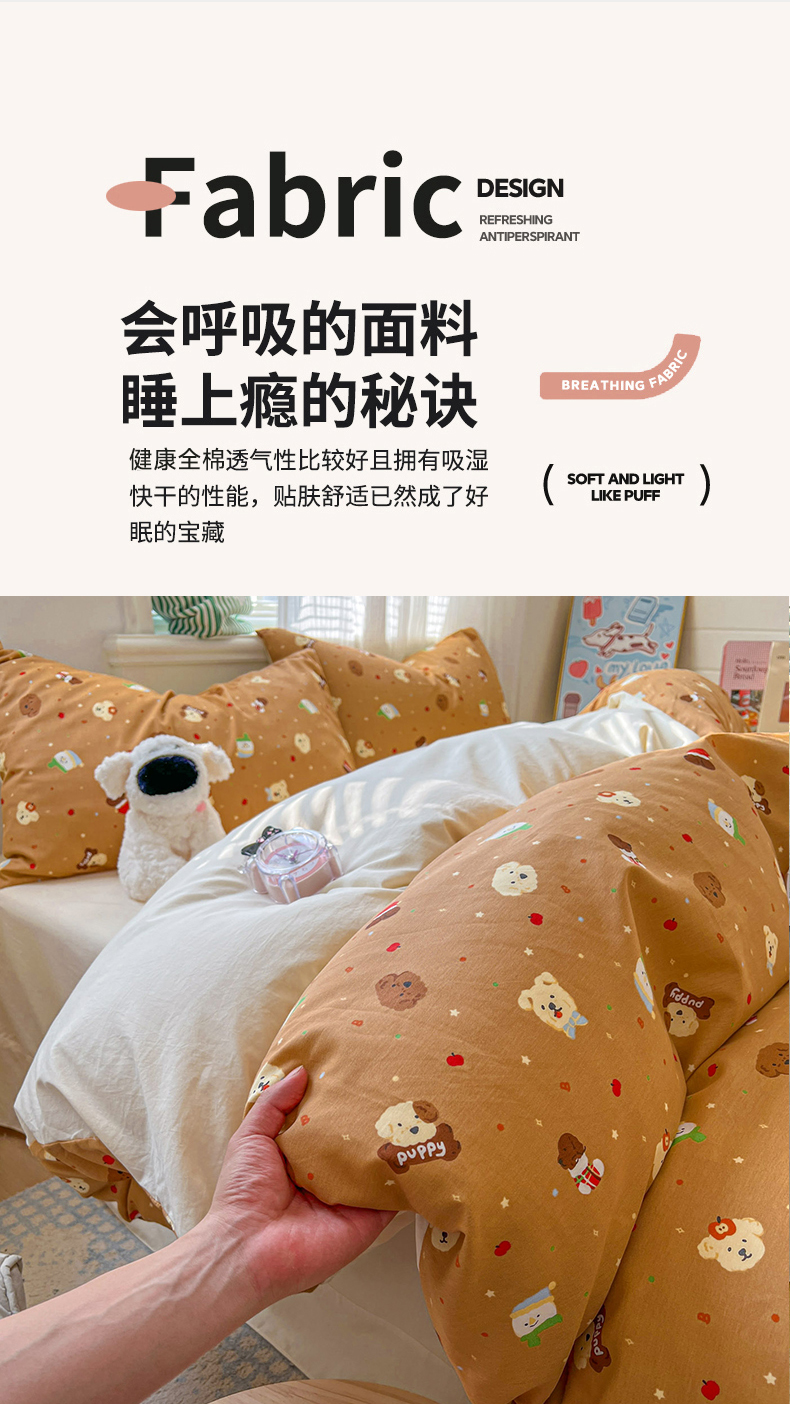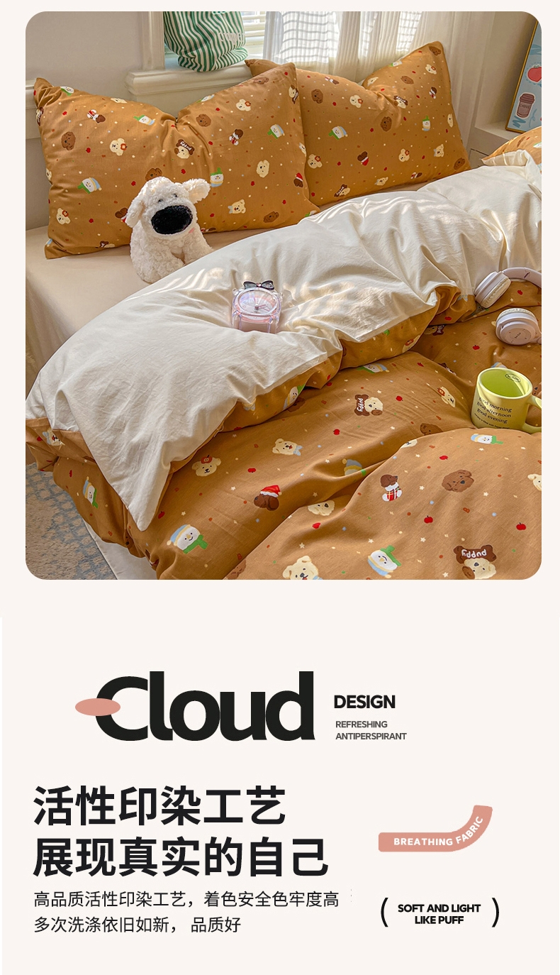 (总)漫仙阁家纺 2025新品云朵棉可爱风卡通烫画单床笠枕套三件套,小浣熊,邻家女孩,小青蛙,兔小姐,花仙子,狗狗家族